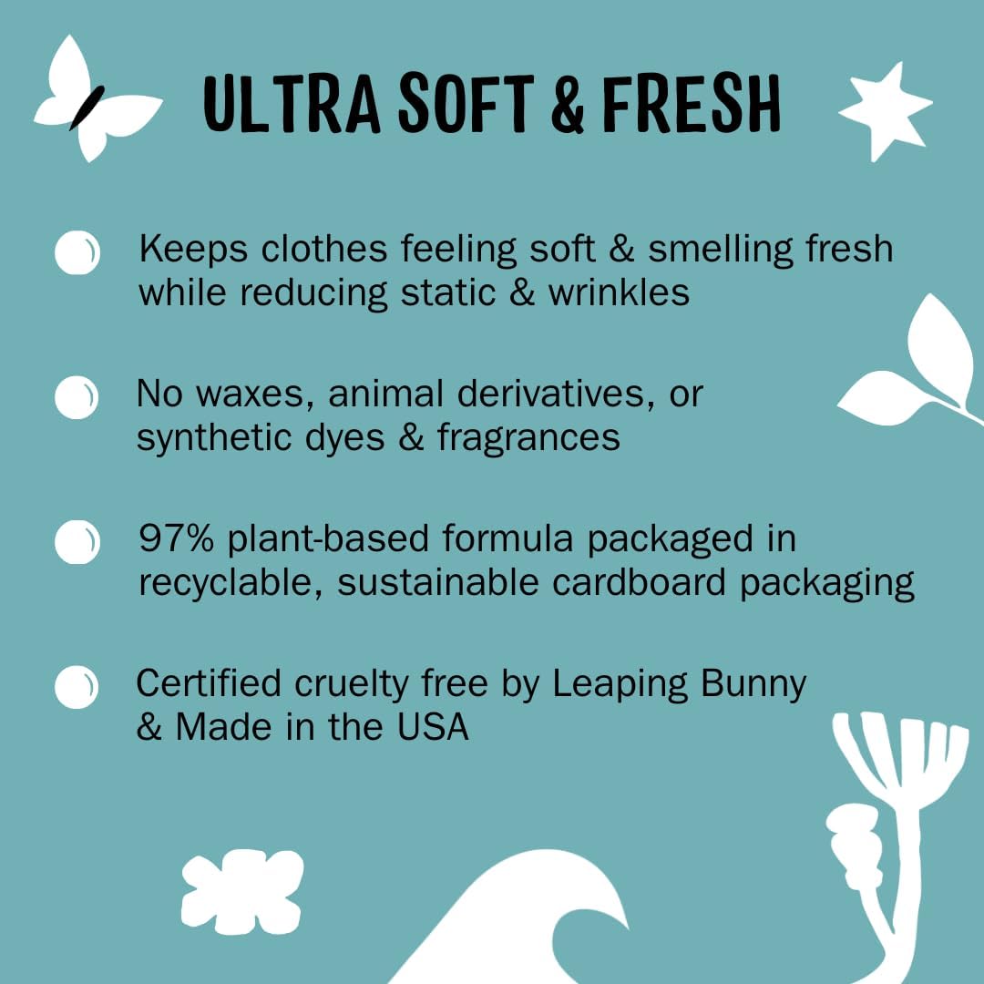 - SOFT-STATIC FREE CLOTHES: Our 97% plant-based dryer sheets employ a gentle fabric softening technology to leave clothes feeling fresh, cozy, and comfy. Better for people with sensitive skin, the environment, and your dryer, these dryer sheets effectively eliminate static so you and your clothes look and feel your best