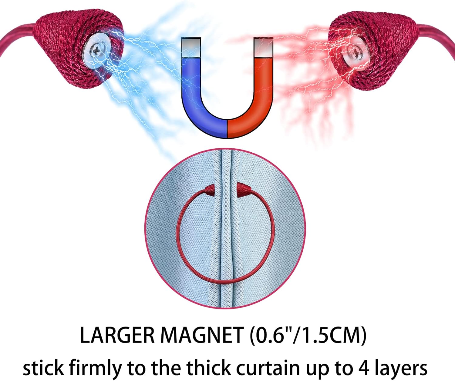 2 PCS Magnetic Curtain Tiebacks, European Style Convenient Drape Tie Backs Holdbacks for Thin or Thick Home & Office Window Draperies, No Tools Required-Burgundy