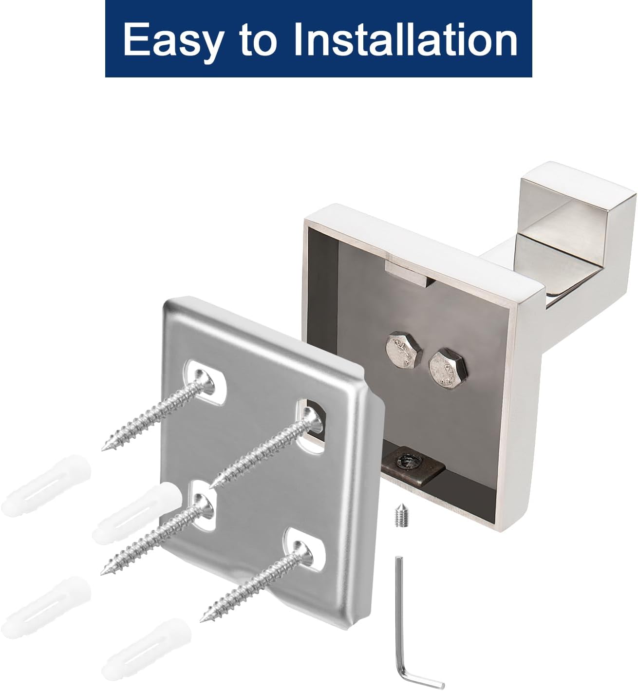 NearMoon Bath Towel Hooks -SUS304 Stainless Steel Square Clothes Robe Hooks Hanger, Heavy Duty Coat Hooks for Bathroom Livingroom Hotel Kitchen Garage, Wall Mounted - 3 Pack (Chrome Finish)