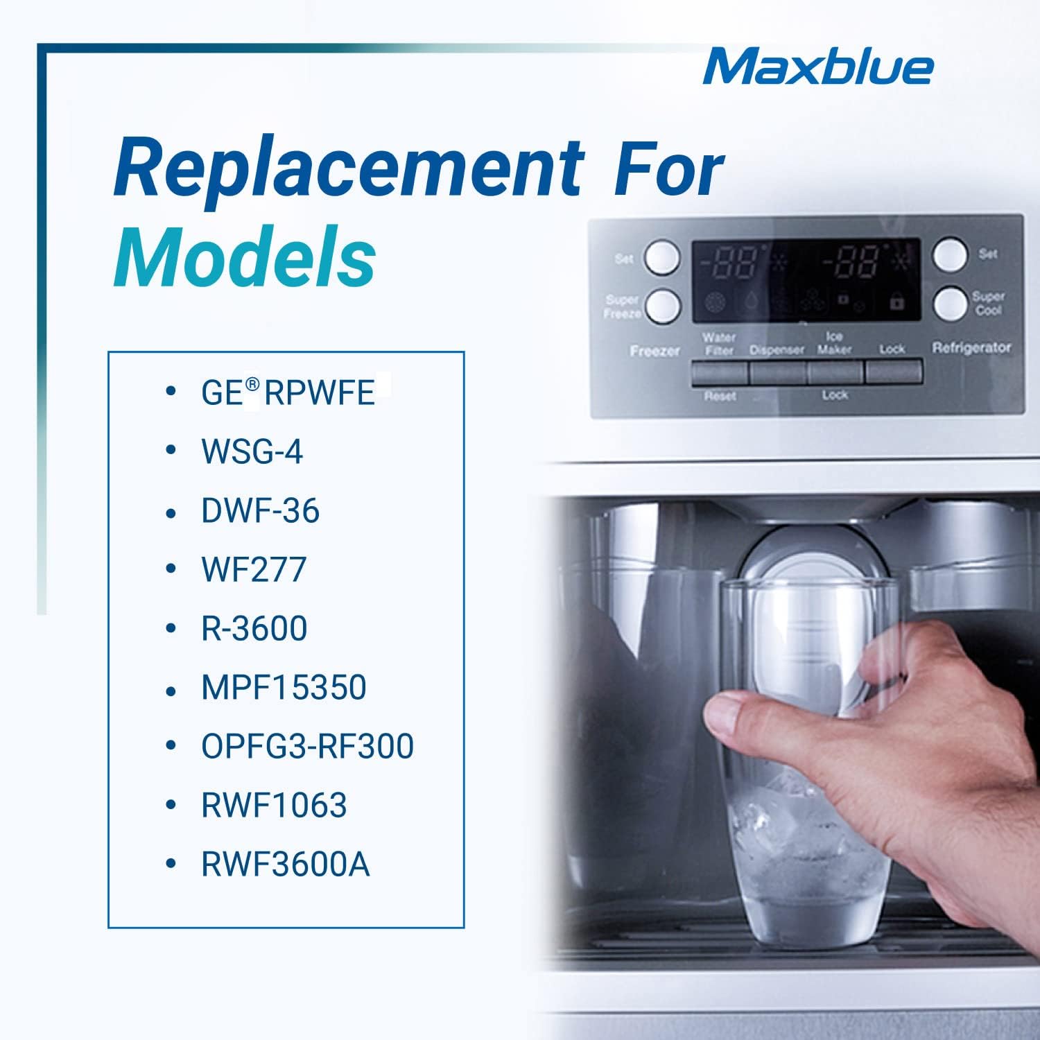 Maxblue Replacement for GE® RPWFE®, RPWF (with CHIP) Refrigerator Water Filter, Compatible with WSG-4, WF277, GFE28GMKES, PFE28KBLTS, GFD28GSLSS, PWE23KSKSS, GYE22HMKES, DFE28JSKSS, 2 Filters