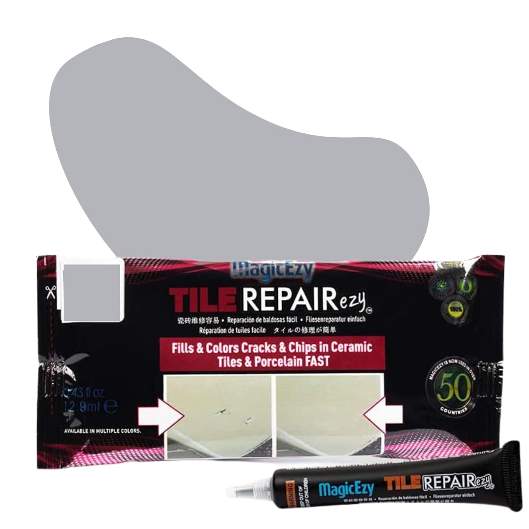 MagicEzy Tile RepairEzy - (Light Gray) Touch Up Paint Filler for Bathroom Tiles, Appliance, Furniture, Walls, Counter Tops - Glossy Finish