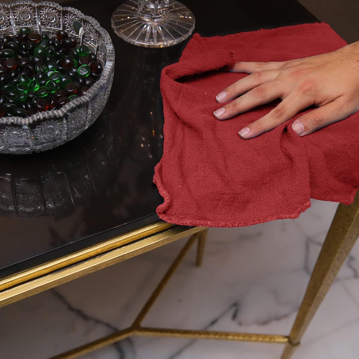 Avalon Towels Cotton Shop Rags – (Pack of 50) Size 12x14 Inches Cleaning Rags – Absorbent Shop Towels and Multipurpose Cleaning Towels for Automobiles, Industries, Garage and Homes (Red)