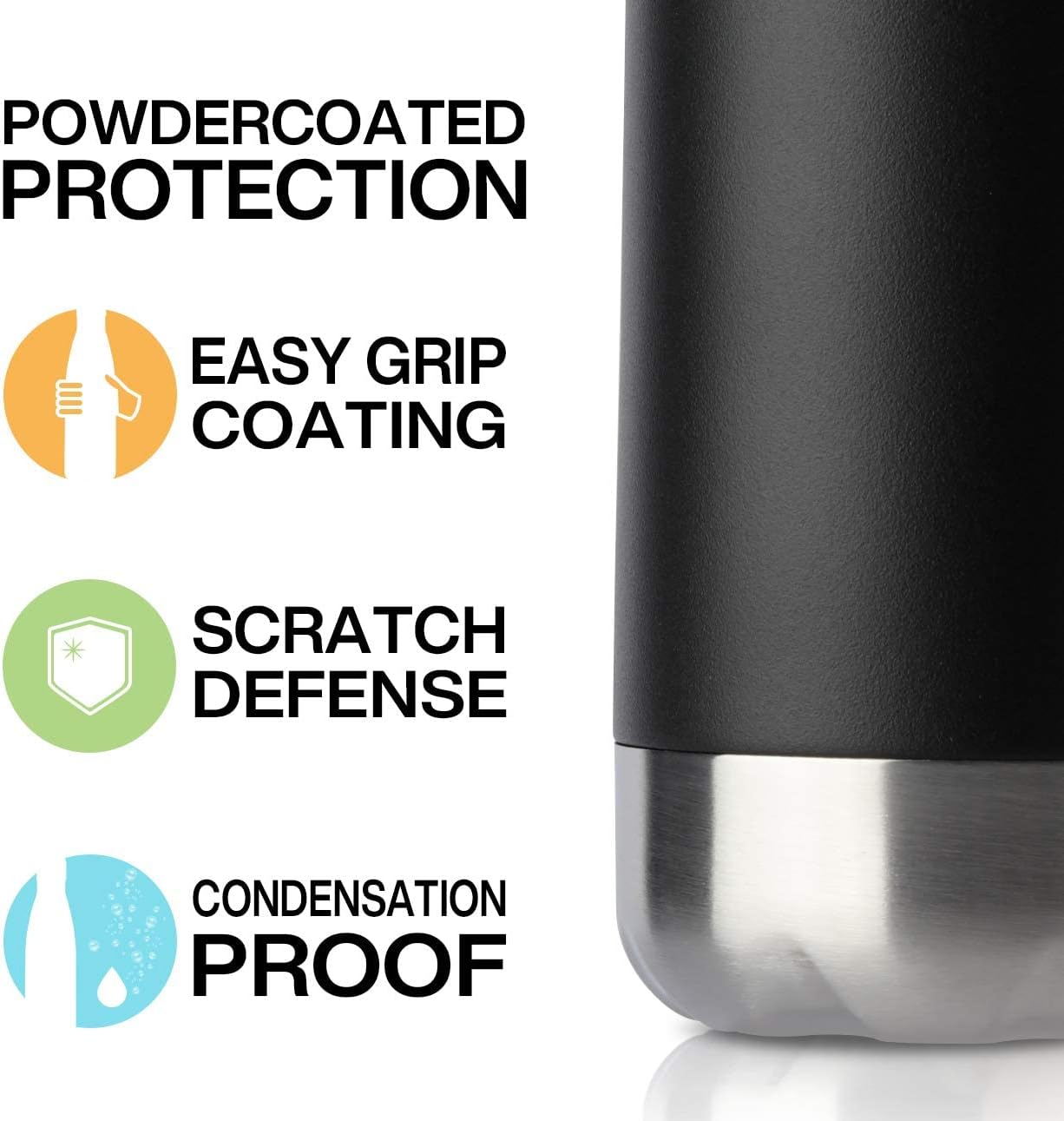 - NO LEAKS:The travel water bottle comes with a leak proof, insulated,NO BPA and Phthalates cap. The stainless steel lid will prevent any accidental spills. This multifunctional water bottle is easy to grab, while you are on the go