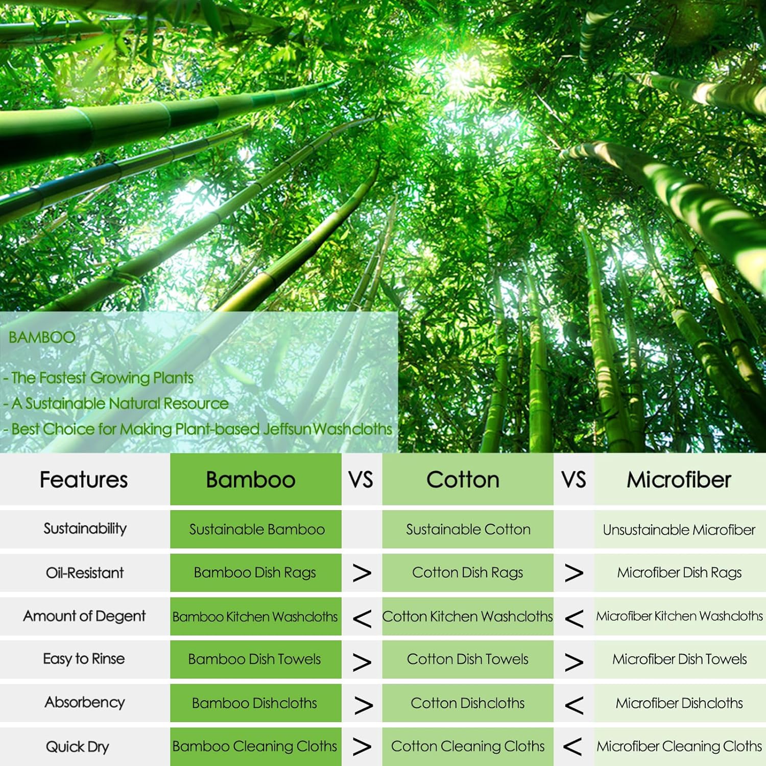 - TACKLE VERSATILE KITCHEN JOBS: Multi used as napkin cloths, cleaning rags, kitchen washcloths, tea towels, dish rags, Jeffsun reusable cleaning cloth is super absorbent, fast dry, lint free, scratch-free, meet all of your kitchen and cooking needs