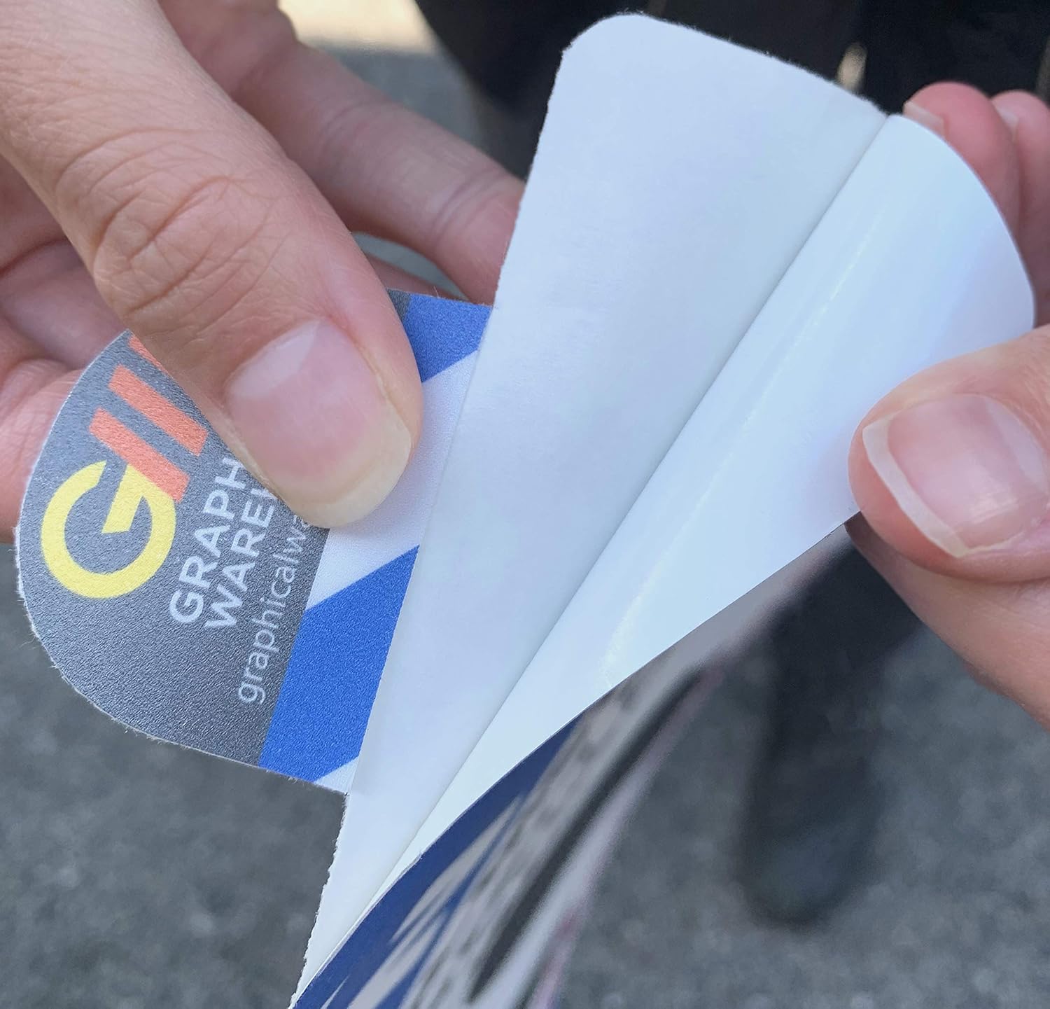 - Durable material that adheres securely to flat, clean surface and removes without damage or residue
