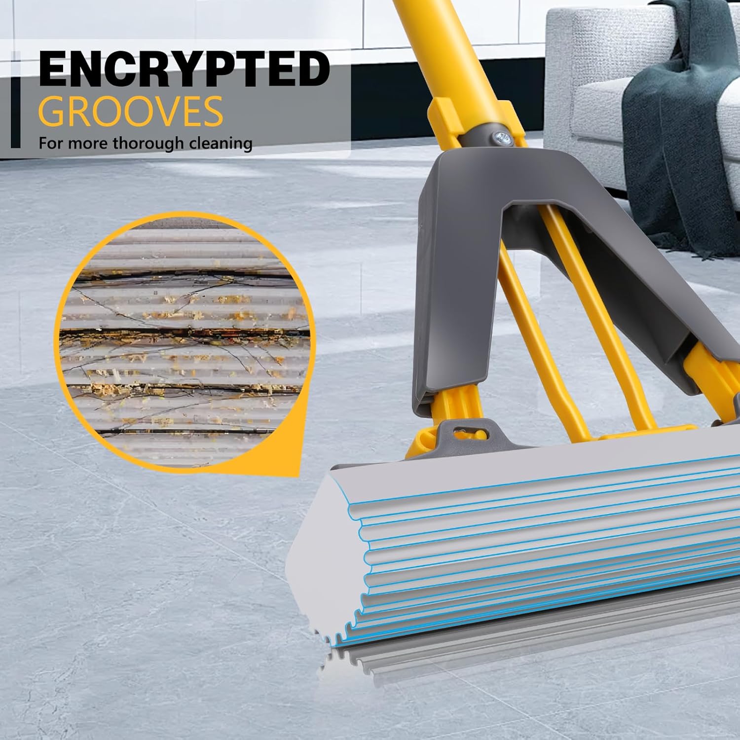 - Super Absorbent Sponge Mop: The sponge mop adopts high quality PVA sponge head, which has strong water absorption, rapid softening and strong decontamination ability. The sponge is designed with horizontal grooves to better absorb dirt, lint and hair on the floor. Comes with 3 reusable sponge heads that save you money and are easy to replace.