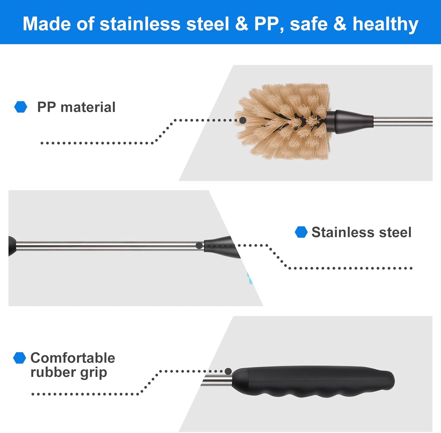 - EXTENDED HANDLE: Rubber-covered handle and ergonomic grooves are designed with comfort features.The 14.9-inch extended cleaning brush is designed to reach the bottom of the bottle for an easy deep clean.