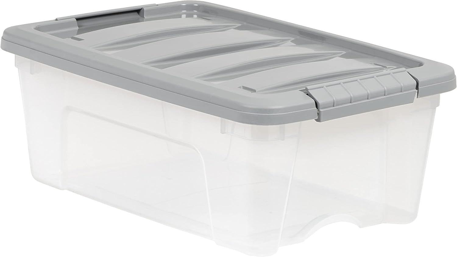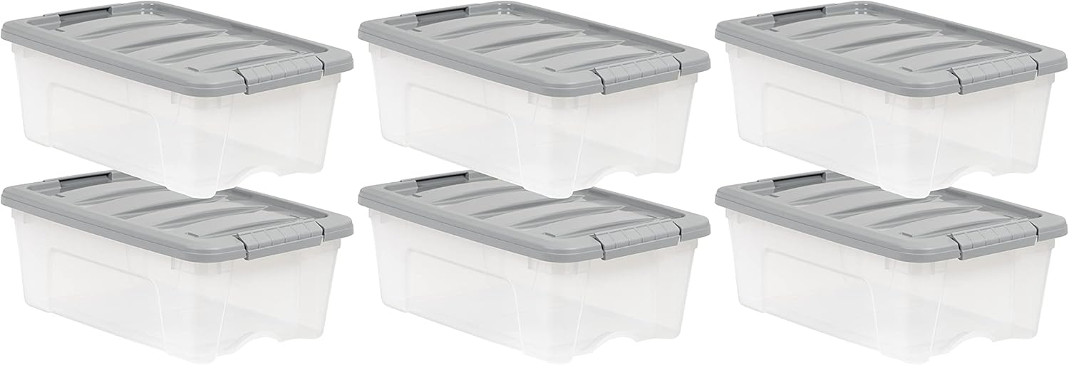 Amazon Basics Plastic Storage Containers with Secure Latching Lids, Stackable Organization Bins, Clear/Grey, 12 Quart, Set of 6