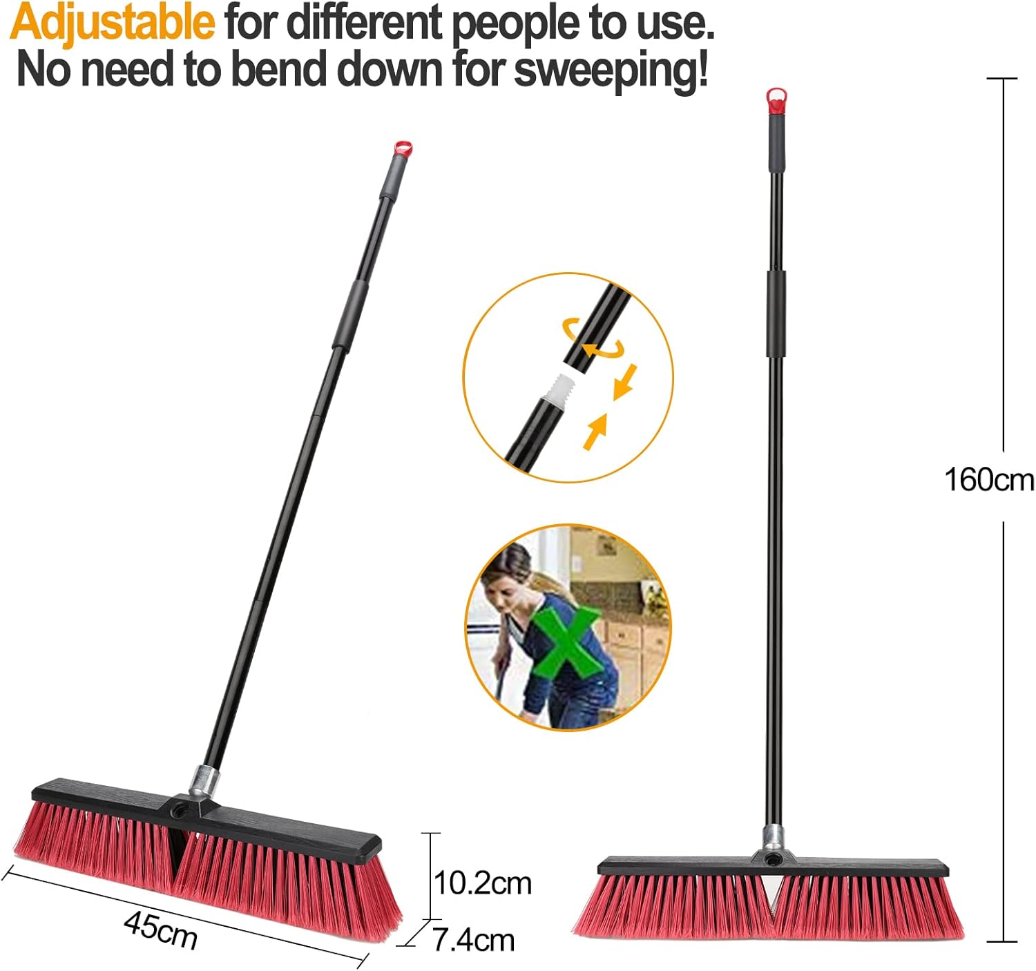 18 inches Push Broom Outdoor Garden Broom with 63" Long Handle for Deck Driveway Garage Yard Patio Concrete Floor Cleaning(Red)