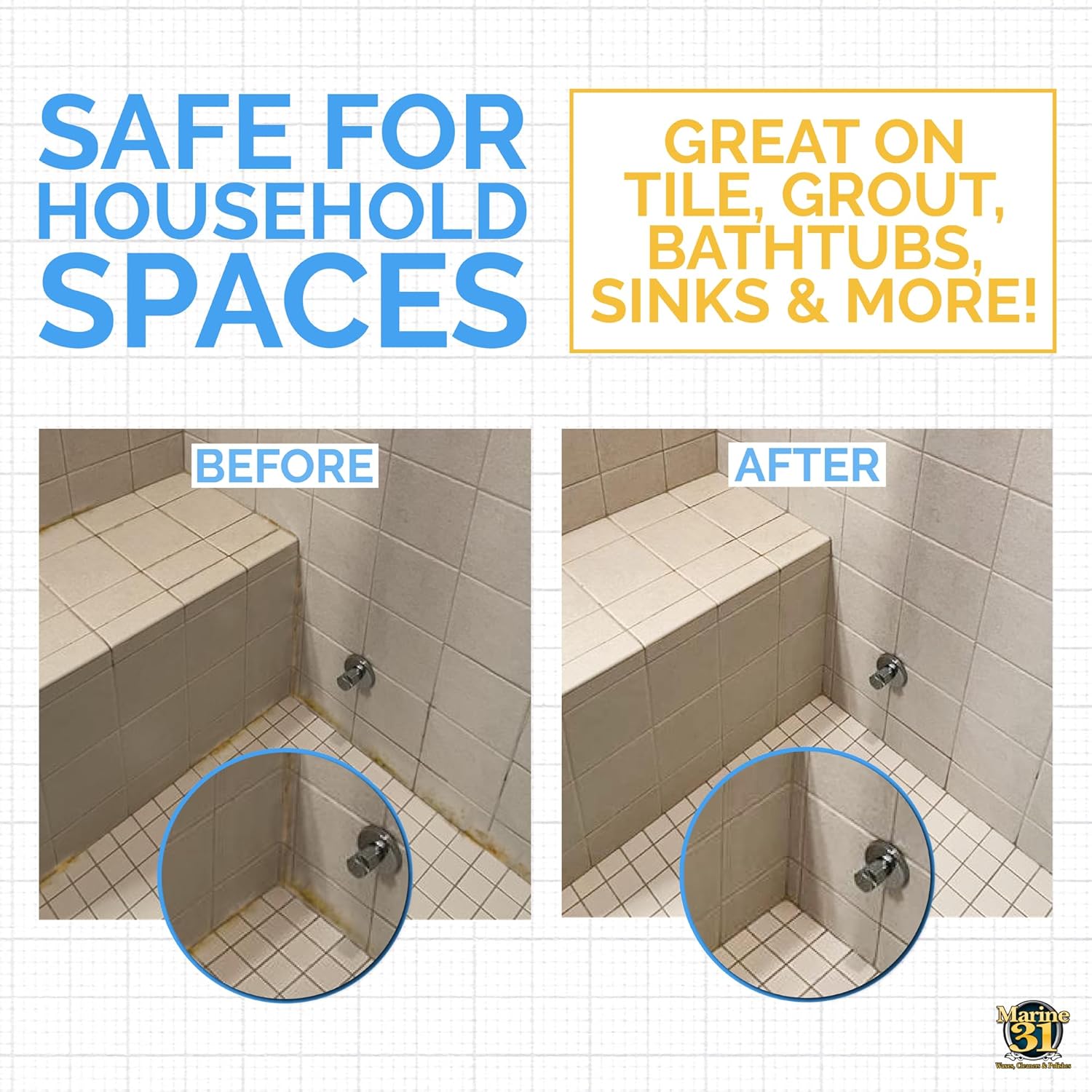 - MULTIPLE USES: Safe for Boats, Vinyl, Tile, Grout, Patio, Coolers, and just about anywhere else that may accumulate stains. Marine 31 Mildew Stain Remover works like no other!