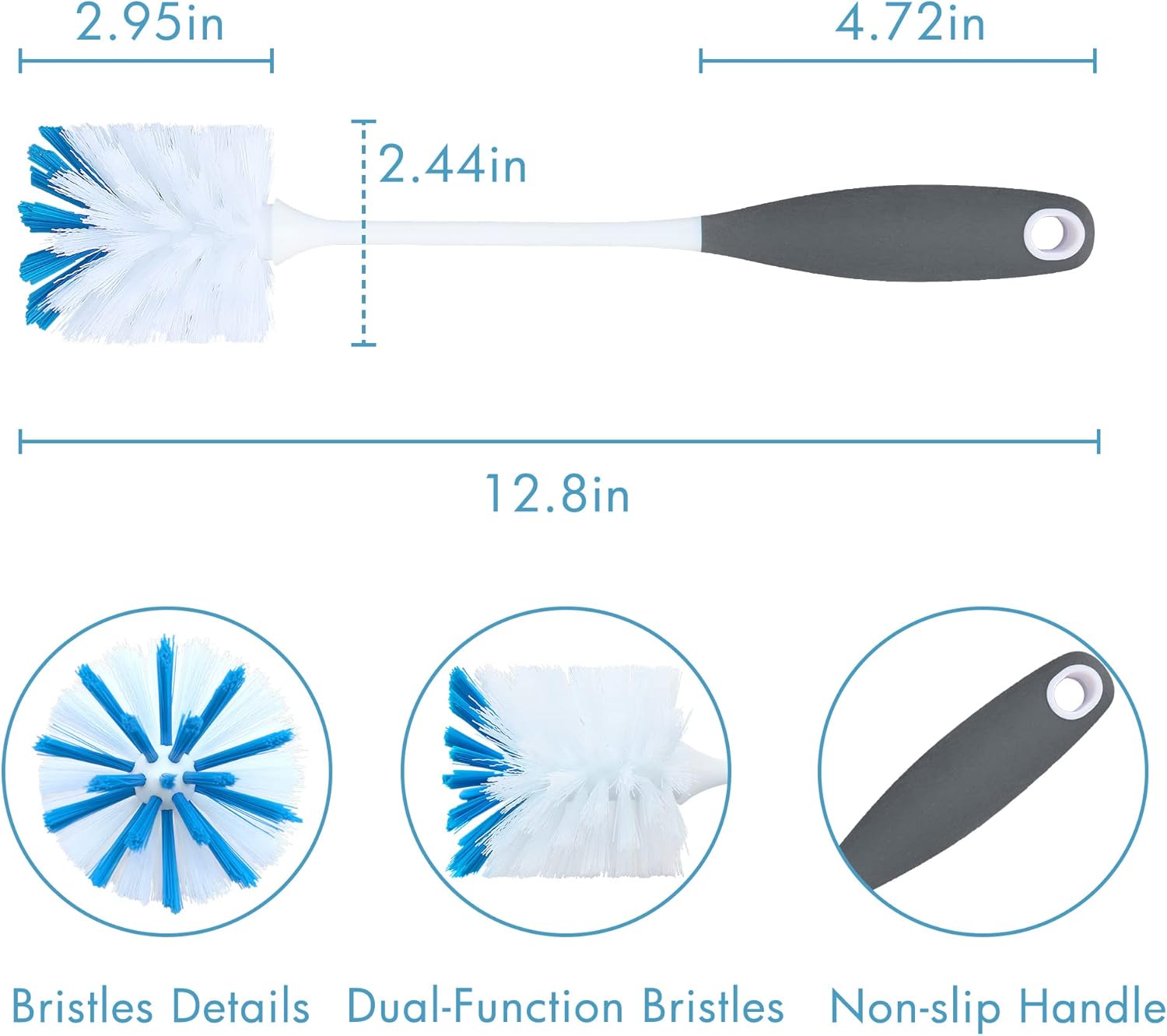 - DURABLE BRISTLE - Made of nylon bristles which are soft and leave no scratches on the bottle during washing. Much better than PET fiber bristles.