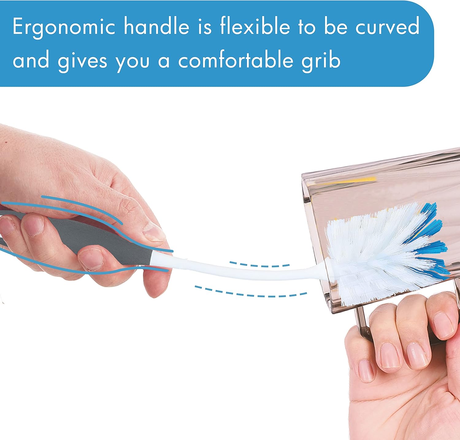 - CLEAN CORNERS - Due to the shape of the brush, it is much easier to reach the bottom of the bottle and clean thicker dirt.