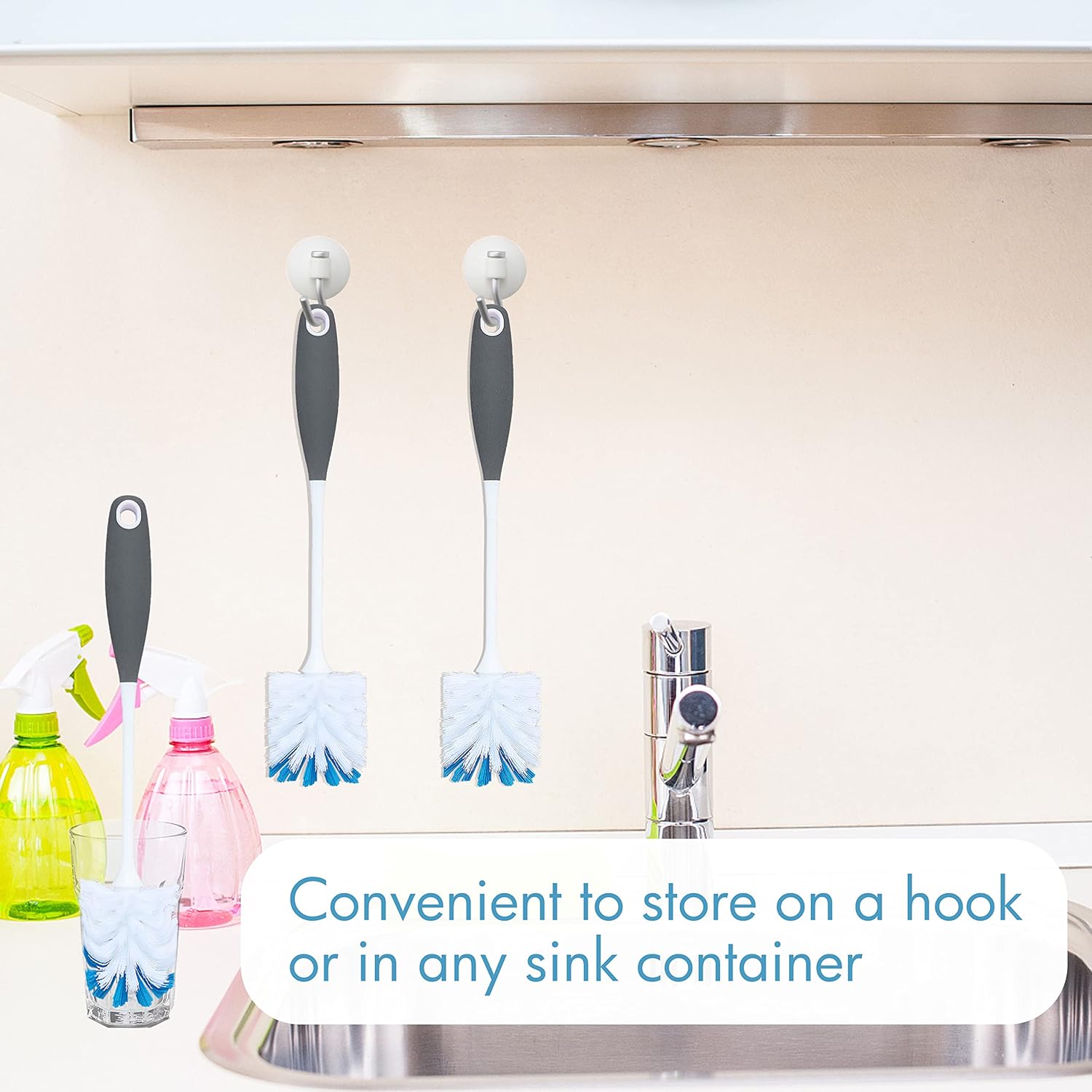 - VARIOUS APPILICATIONS - This bottle cleaner brush can widely used for glassware, water bottles, travel mugs, blender, grinder etc. There is a hang loop in the end of handle for easy storage.