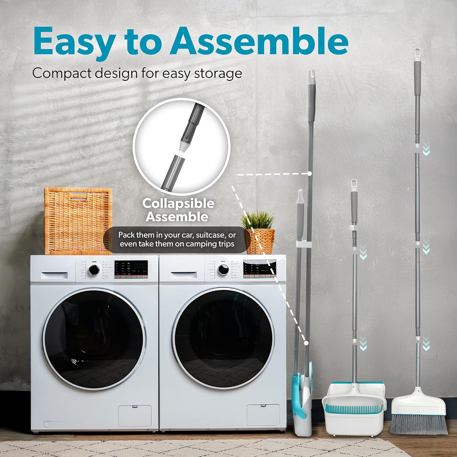 - Perfect Broom & Dustpan Combo - Professional grade full-sized broom & dustpan set for convenient sweeping at home & commercial use. Easy to assemble & very reliable. Being a real space saver, the broom fits firmly inside the dustpan & clips to handle for an easy stand-up and storage. 6 layers of soft, dense & flexible bristles effectively grab dust & dirt. The 36'' handle is a perfect length