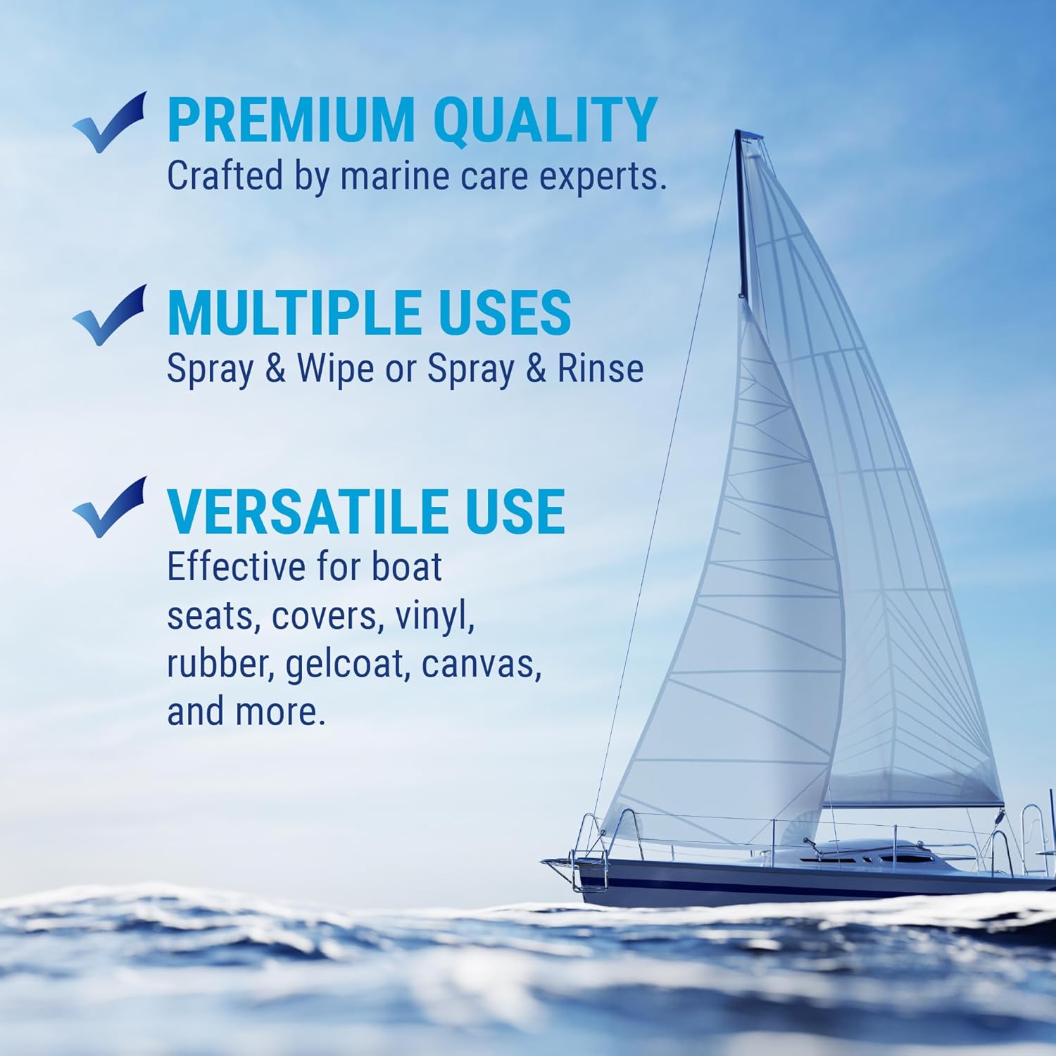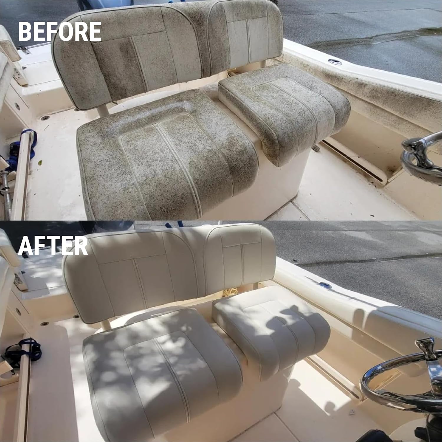 - VERSATILE APPLICATION: Ideal for use on boat interiors, vinyl cushions, fenders, life jackets, sails, etc. Make your vinyl boat seats, covers, cabin, deck, bumpers and more squeaky clean! Just don’t use on fabric or textile.