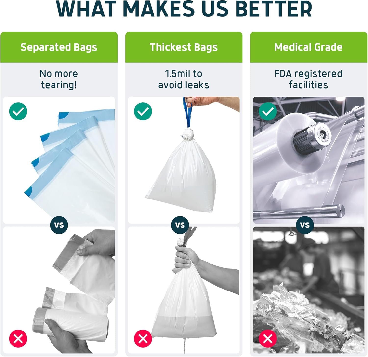 - Easy To Use And Easy To Dispose Of: Simply remove the commode liner with the aloe scented super absorbent pad by pulling on the strings, tie up the bag opening to eliminate odors, and easily dispose of them. They just make clean up a breeze.