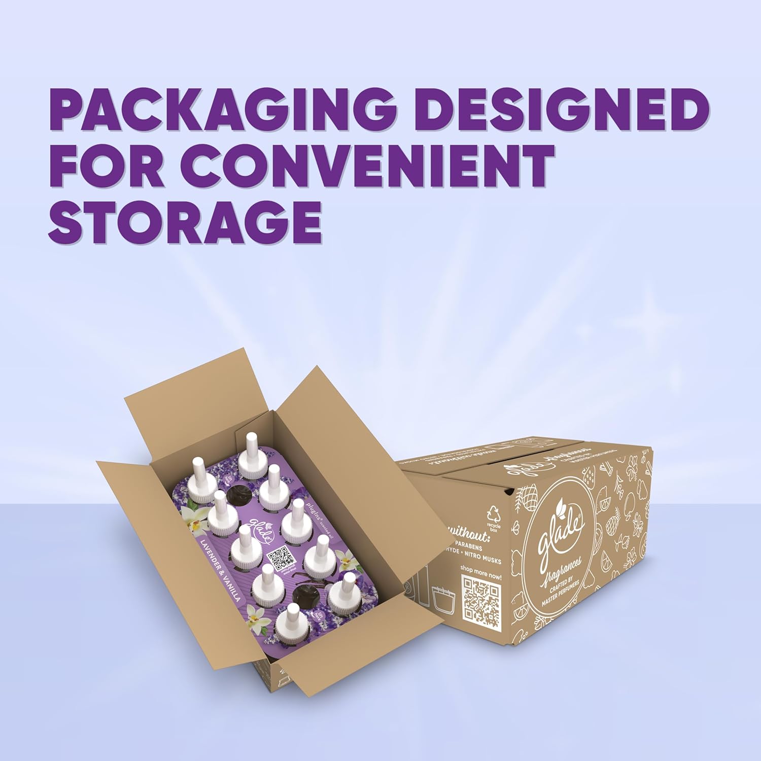Glade PlugIns Refills Air Freshener, Scented and Essential Oils for Home and Bathroom, Lavender & Vanilla, 6.7 Fl Oz, 10 Count (Packaging May Vary)