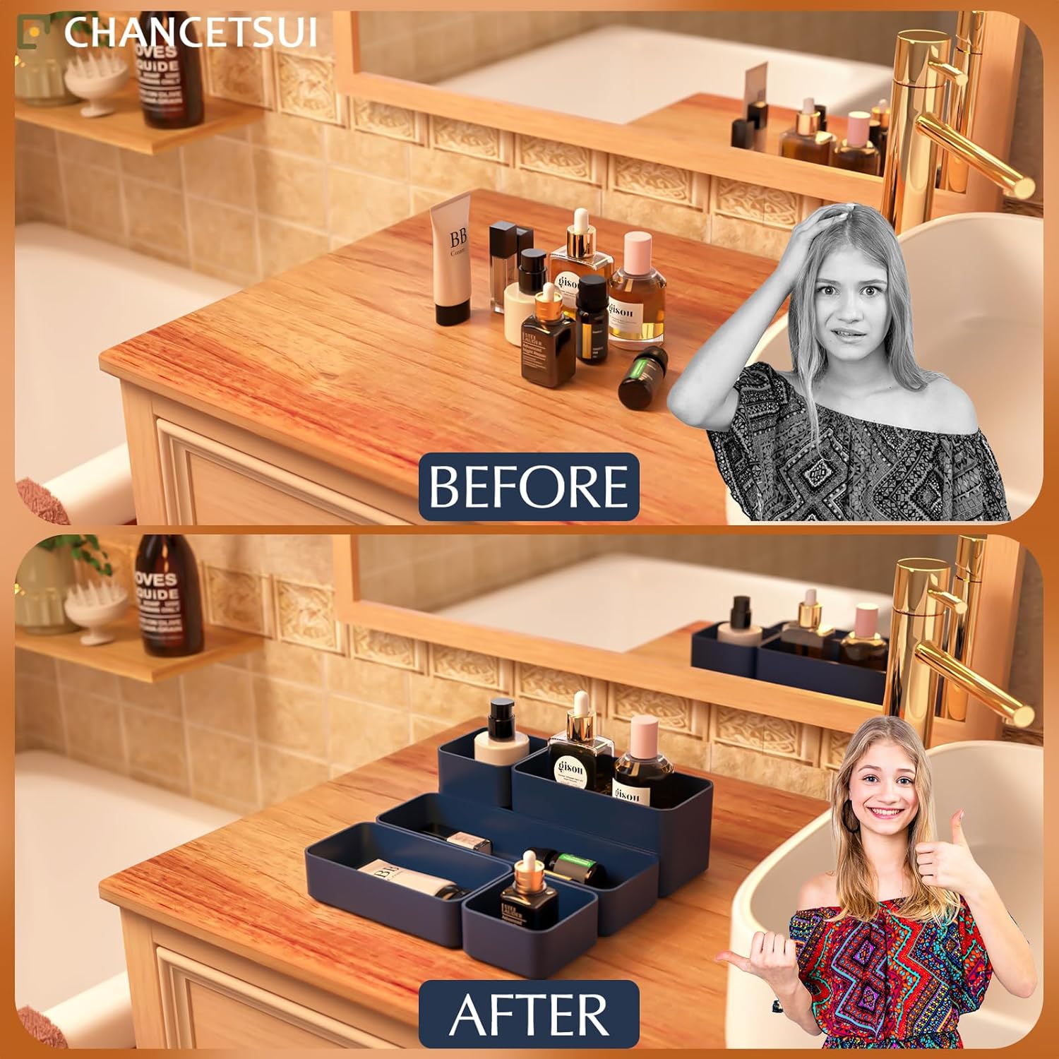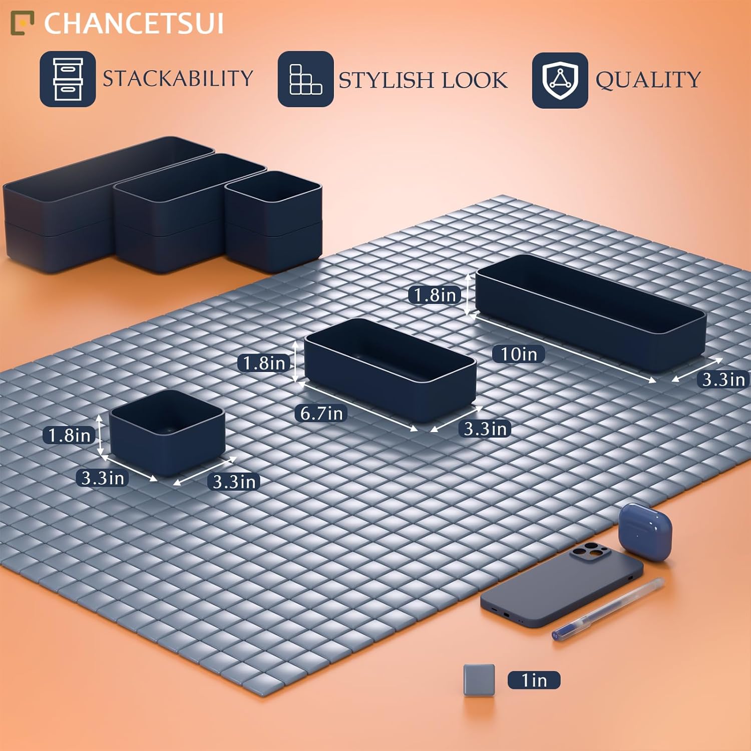 Drawer Organizers, Storage Plastic Desk Bins Stackable Organizers Tray, Bathroom Dividers Small Makeup Bin Clothes Organizing Trays for Containers Vanity Office Cabinet Sliverware Set, Blue
