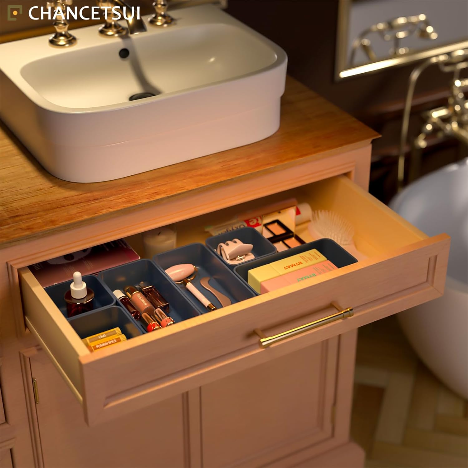 - 【Customize and Stackable】 Individual Plastic Storage Bins can be used to separate your messy drawer and fit all kinds of drawers, such as vanity, bathroom, kitchen, and office drawers. You can customize the layout of the drawer organizers to suit any specific needs.