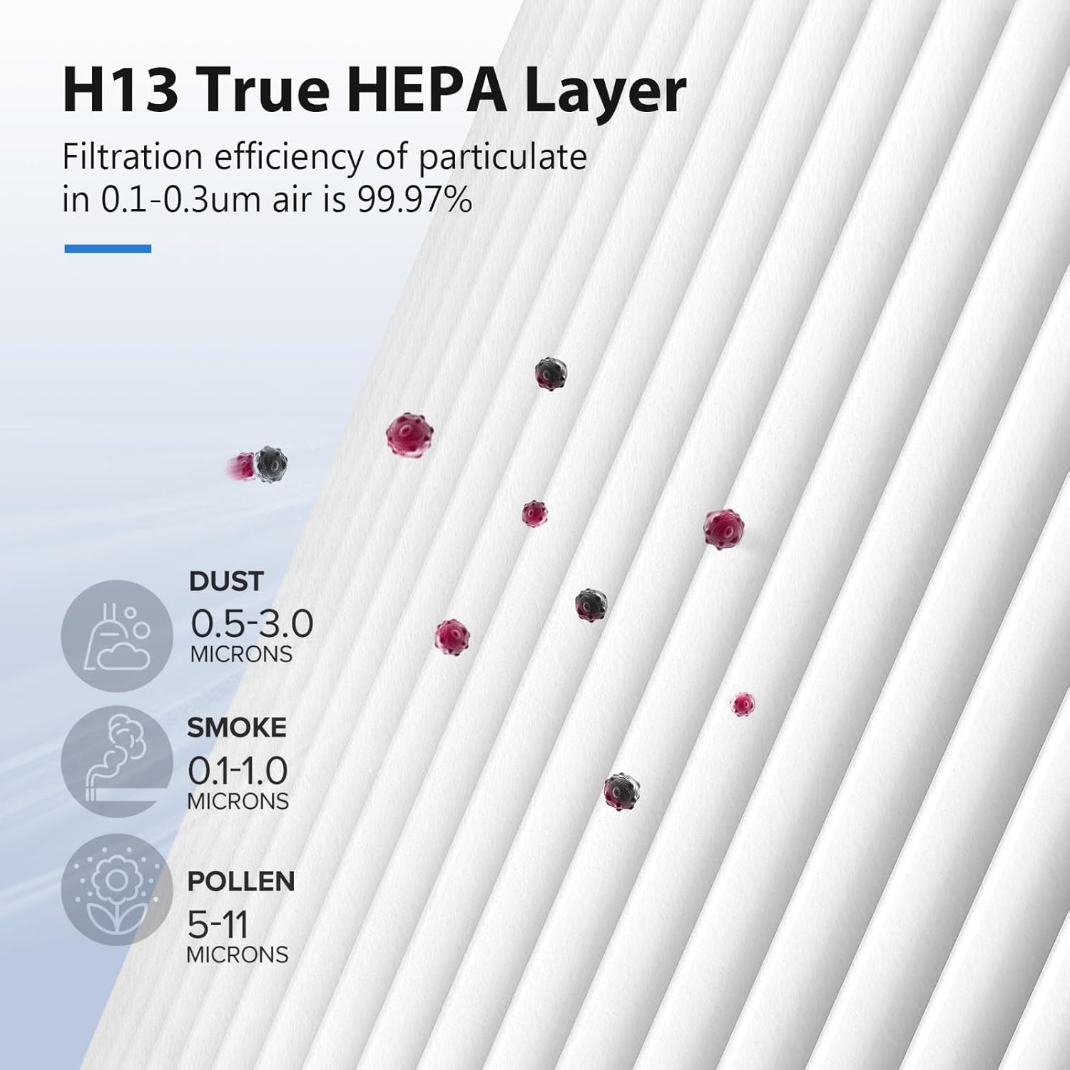 - 4-IN-1 ADVANCED FILTRATION: Mk01 air filter multi-stage defense system combines a nylon pre-filter for large particles, Reaction filter layer can react with harmful particles entering the filter and produce harmless substances, a efficiency filter, and high-density pelletized activated carbon to neutralize odors, VOCs, and formaldehyde—delivering clinic-grade air purity for your home.