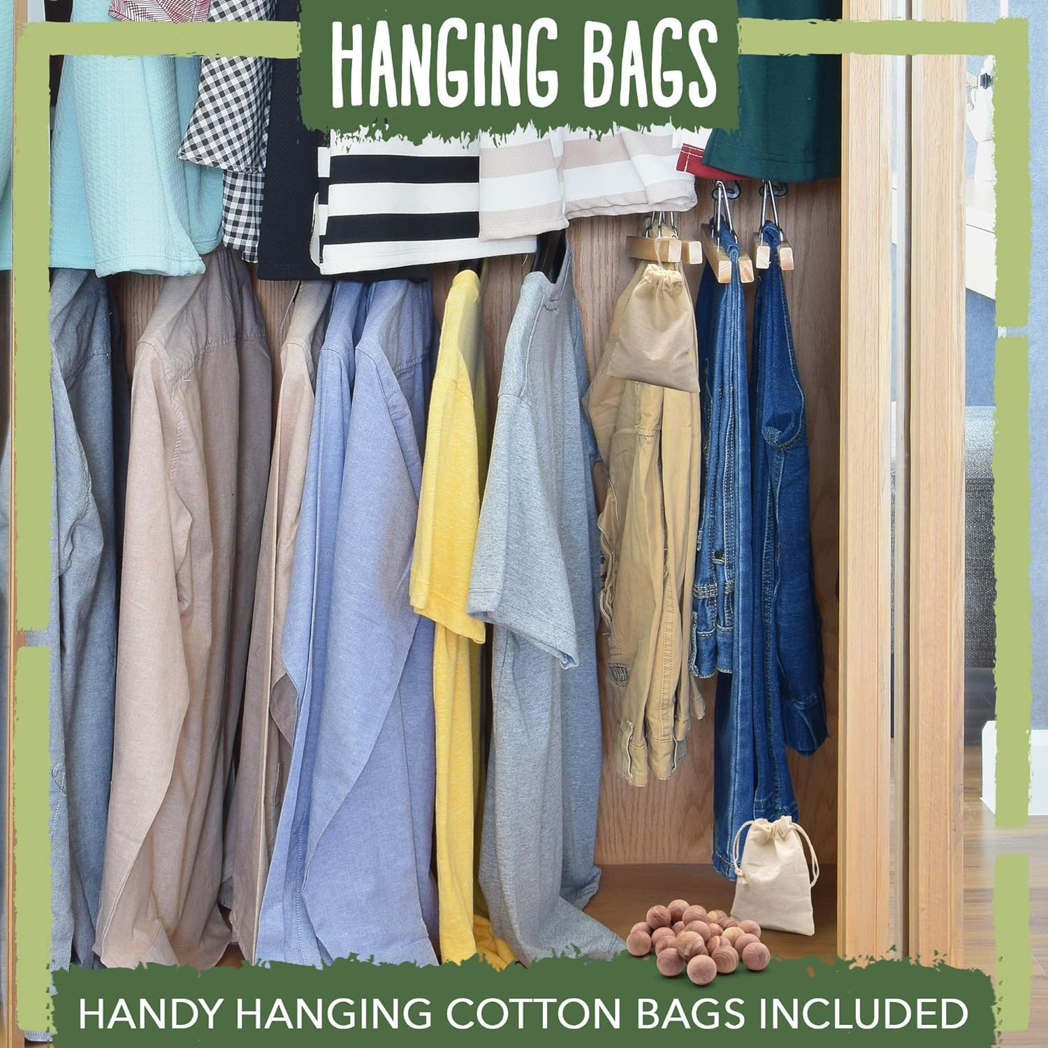 - MULTIPURPOSE & VERSATILE - Our scented cedar balls can be placed in drawers, closets, shelves, bags and more. As our balls are 100% natural, they can touch any fabric directly and won't stain or emit any smell on clothes. Our cedar wood planks for closets also reduce mustiness, absorb excess moisture and keep your wardrobe, as well as your favorite sweater, smelling delectably fresh! Simply put into the cotton bag sachets provided for the best experience.