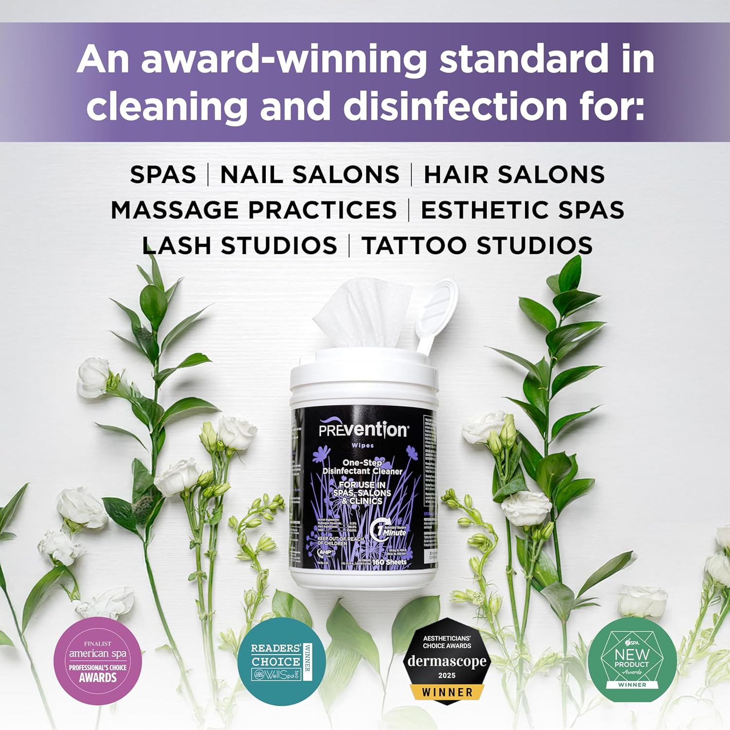 Prevention All Purpose Disinfectant Wipes – Canister of Cleaning Wipes for Salons, Spas, Wellness Centers and Yoga Studios – Hospital Grade Surface Sanitizing – 160 Count