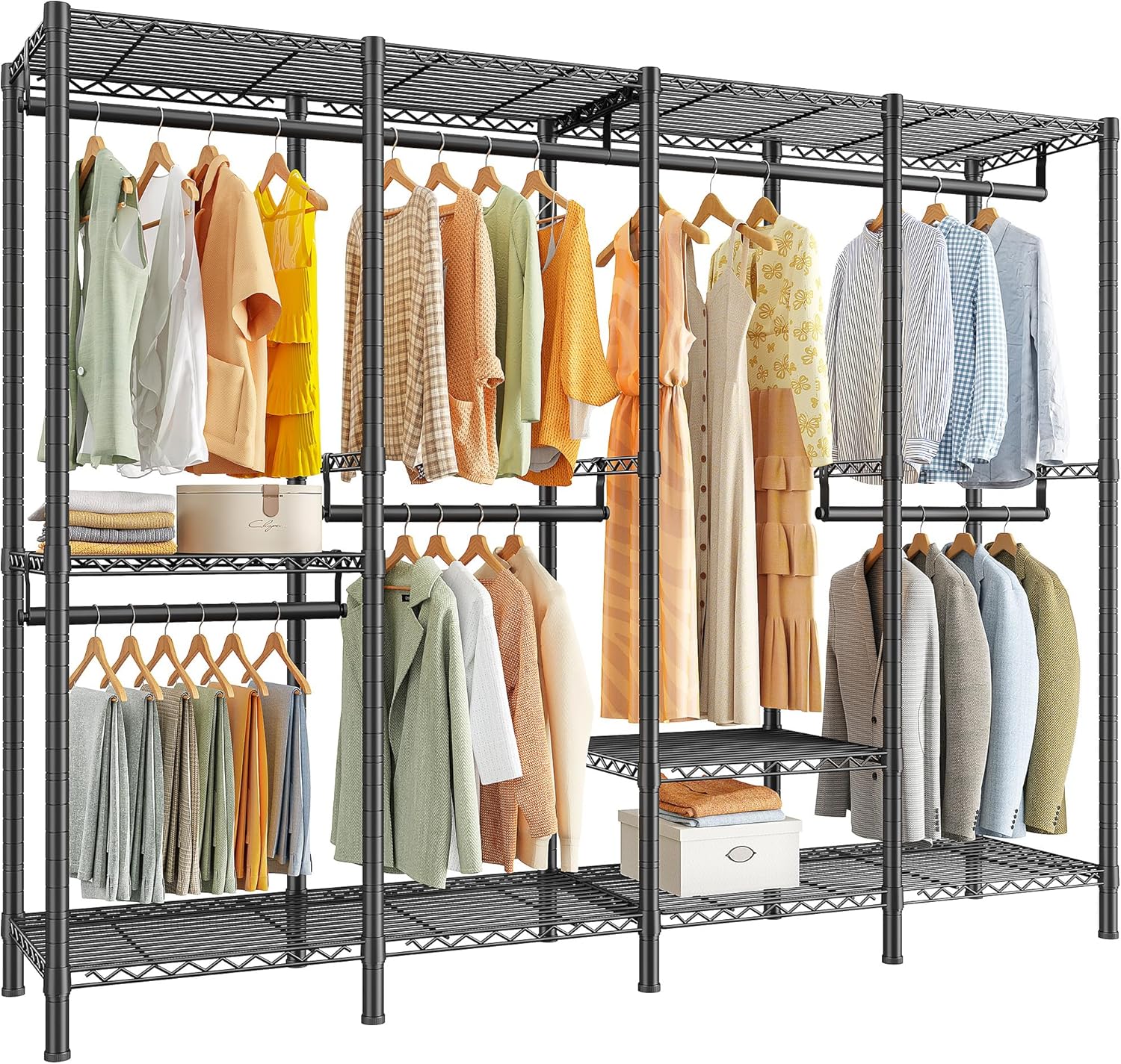 Raybee Heavy Duty Clothes Rack for Hanging Clothes,Clothing Rack with Shelves, Adjustable,76" W x 77" H x 18" D,Max Load 1150lbs,Black