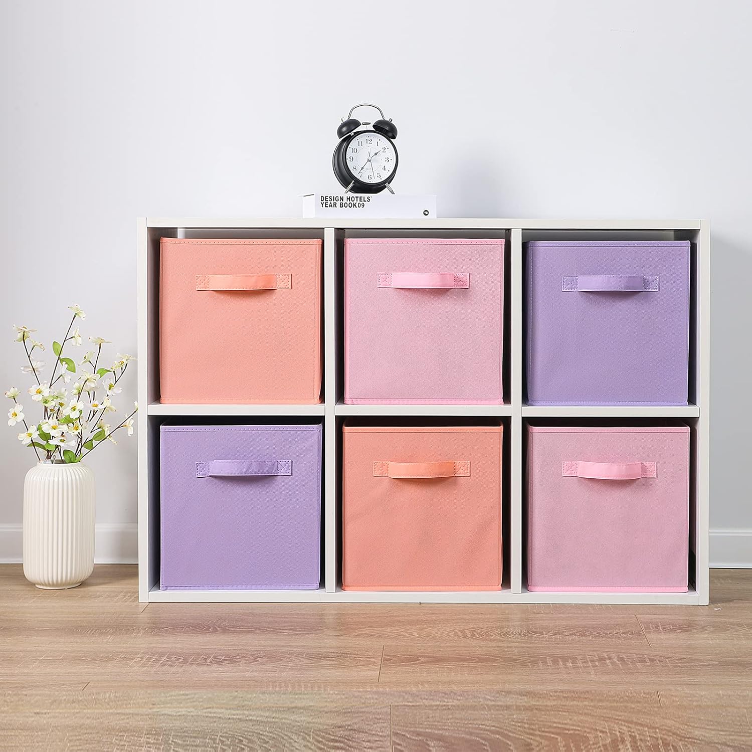Stero 13x13x13 Inch Fabric Storage Bins 6 Pack Fun Colored Durable Storage Cubes with Handles Foldable Cube Baskets for Home, Kids Room, Closet and Toys Organization Purple, Pink, peachpuff