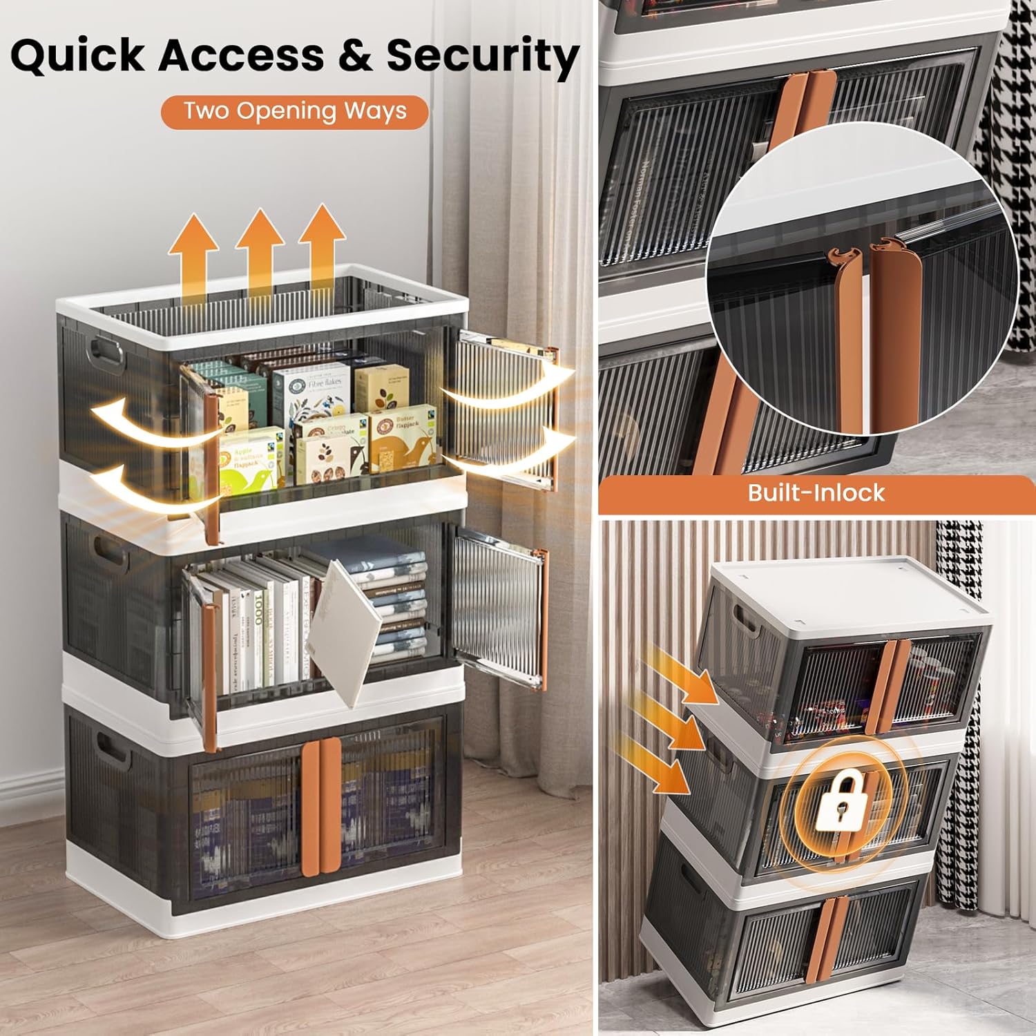 - Quick Access & Security: Clear doors let you see contents instantly, open-front design allows effortless item retrieval. Additionally, the built-in lock clasp prevents accidental opening during transport