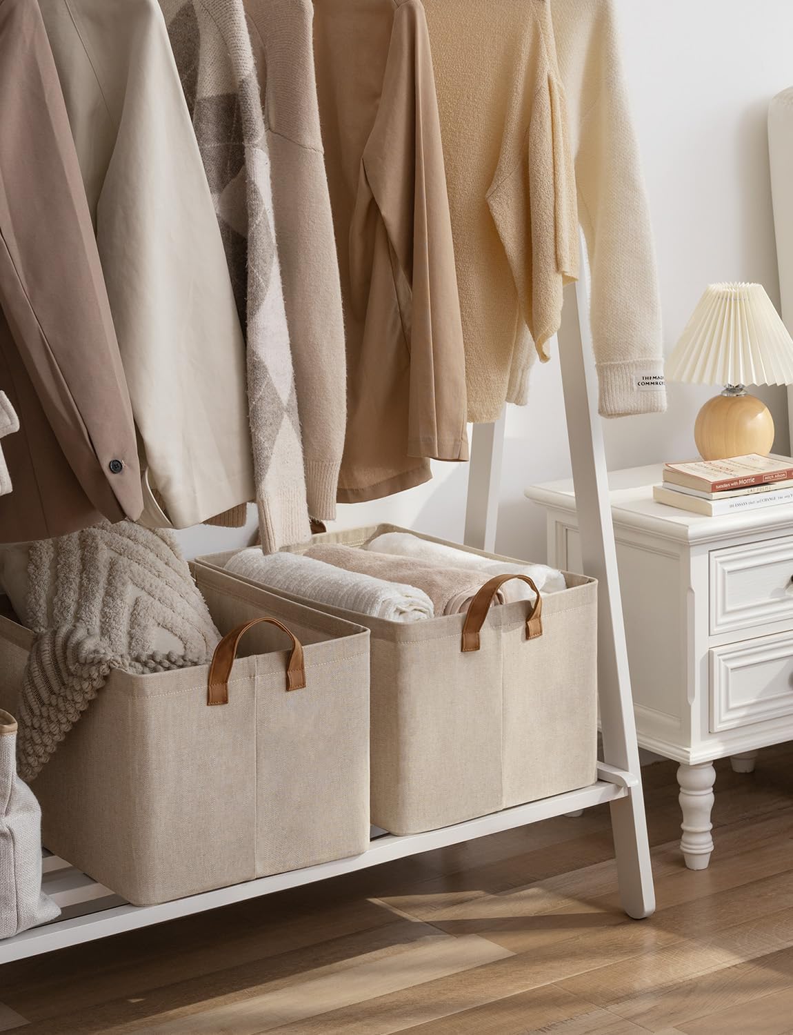 - Premium Quality: Made from high-quality fabric and reinforced with a heavy-duty MDF bottom board and a sturdy metal frame. The solid construction enables the storage bins to stand upright without support, even when empty.