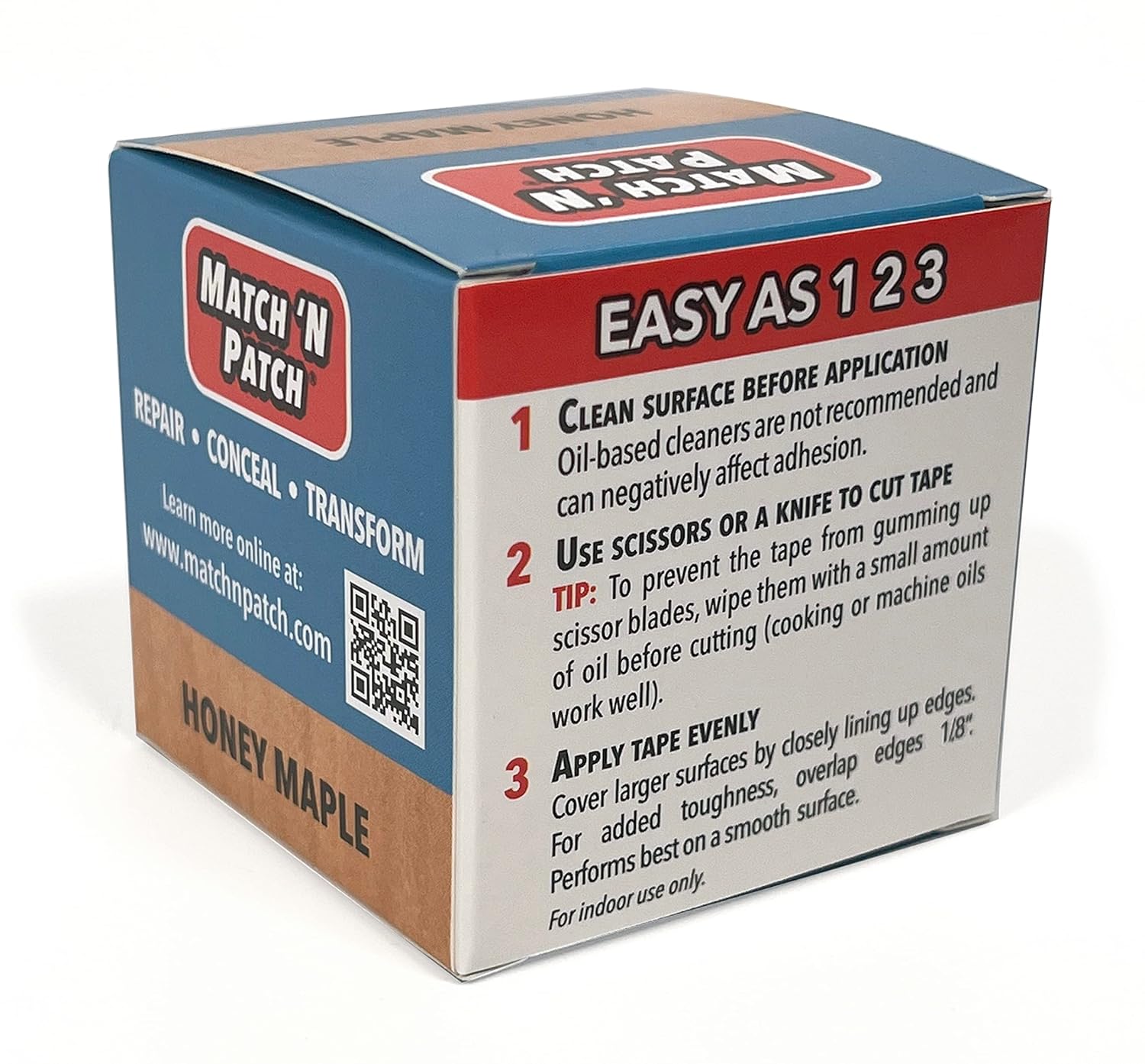 - MATCHING OPTIONS AVAILABLE: The Honey Maple pattern is part of a broader collection, available in a larger size for extensive repair needs. Visit the MATCH ’N PATCH Store to explore all 13 wood tape shades and find the perfect match for your project.