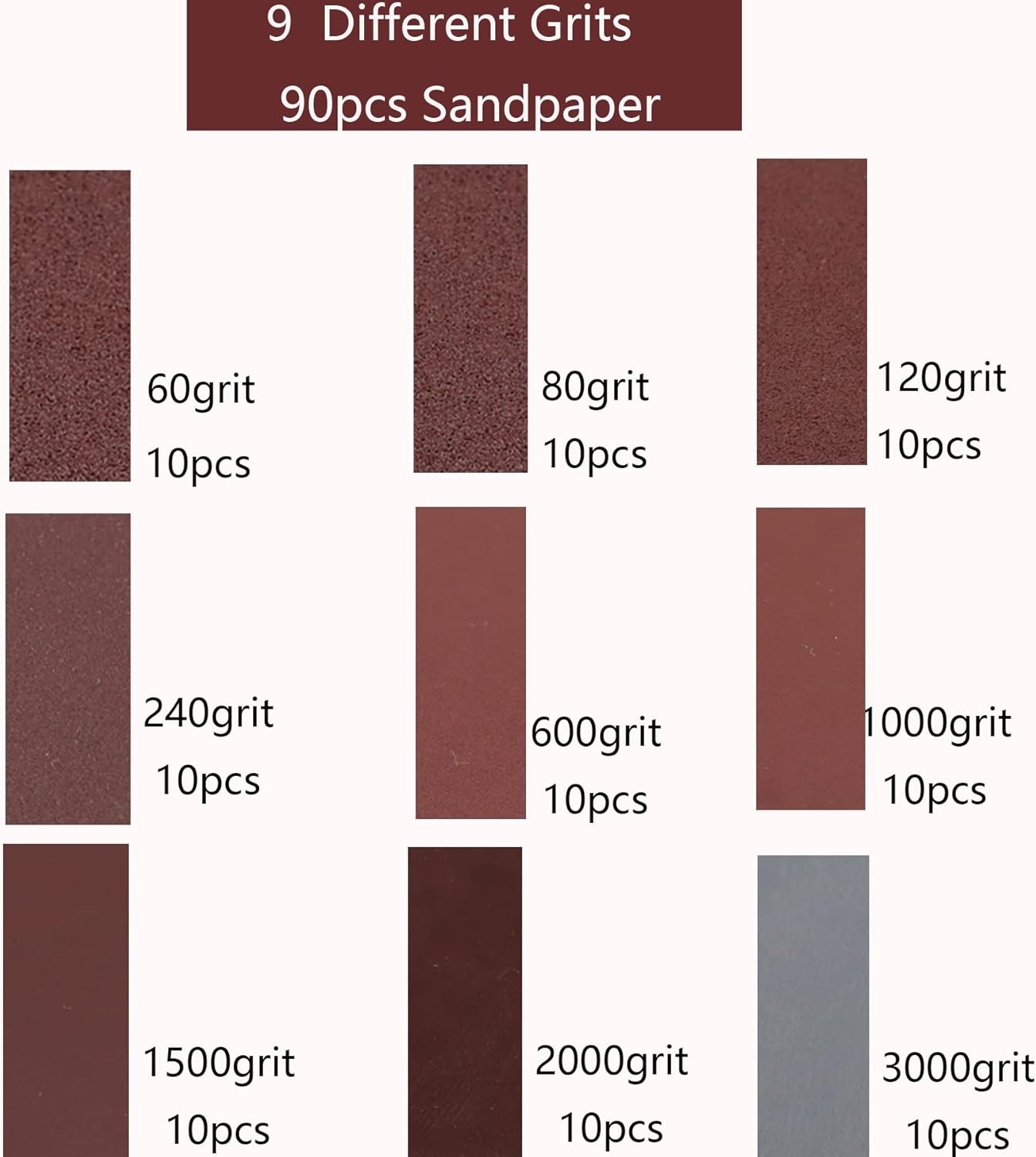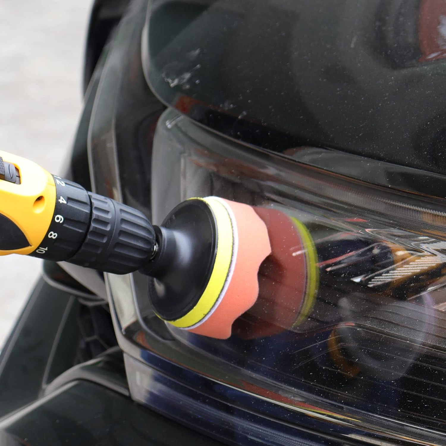 - 【Car Headlight Restoration and Polishing Kit】Package Includes 90pcs Sanding Discs(60/80/120/240/600/1000/1500/2000 /3000 each 10pcs) 6pcs 3" Sponge Polishing Pads, 2pcs Wool Buffer Pads, 2pcs Drill Adapter, and 1pcs Backing Pad, 1pcs Interface Pad, 1pcs Fast Finshing Pad and 1pcs Masking Tape