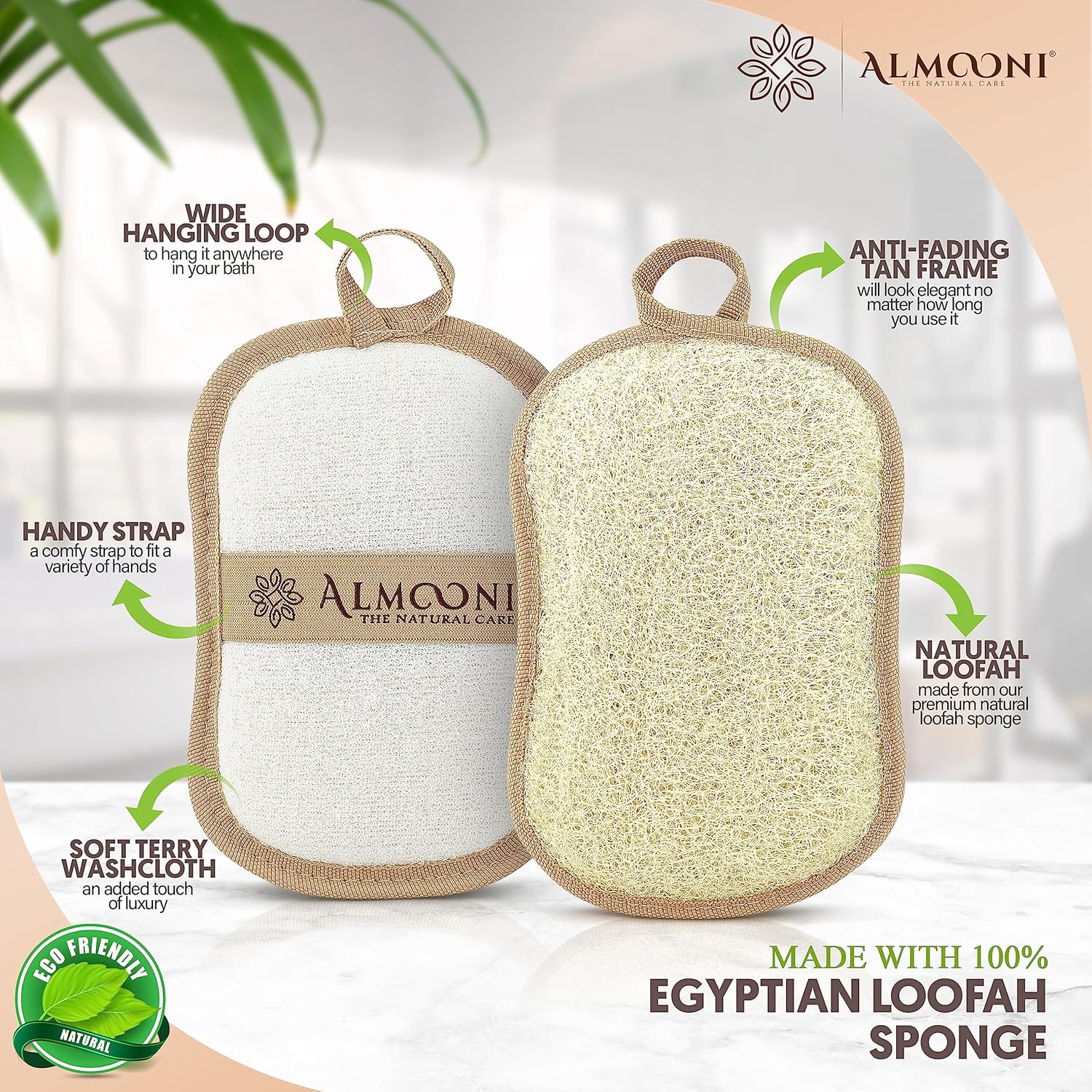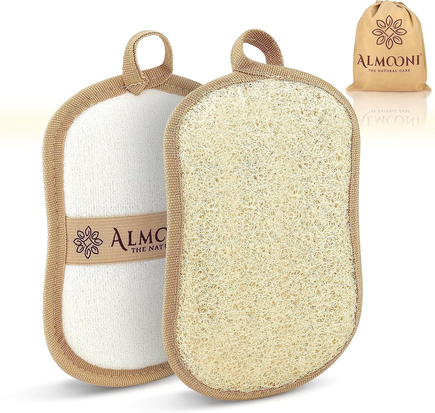 - SHOWER YOUR WAY to healthier-looking skin with body loofah pads by ALMOONI. Lightly textured exfoliating pads sweep away dead cells to give you a more radiant appearance from head to toe.