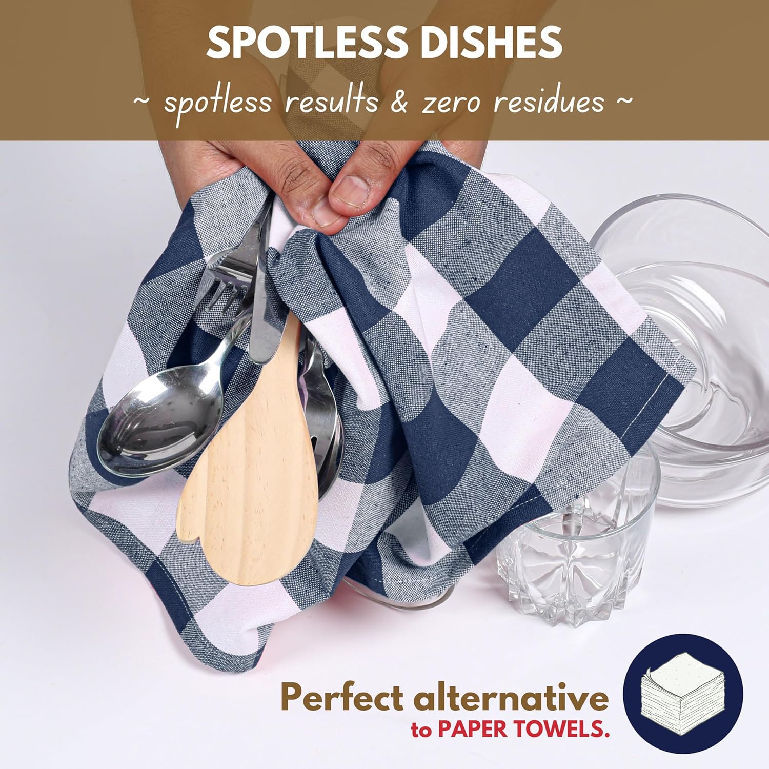 Native Fab 4-Pack Kitchen Towel with Hanging Loop 16x26 inches, Cotton Buffalo Check Kitchen Towels for Cleaning Drying, Washcloths Soft & Absorbent Cloth Rags, Bar Towel, Dish Cloth, Navy