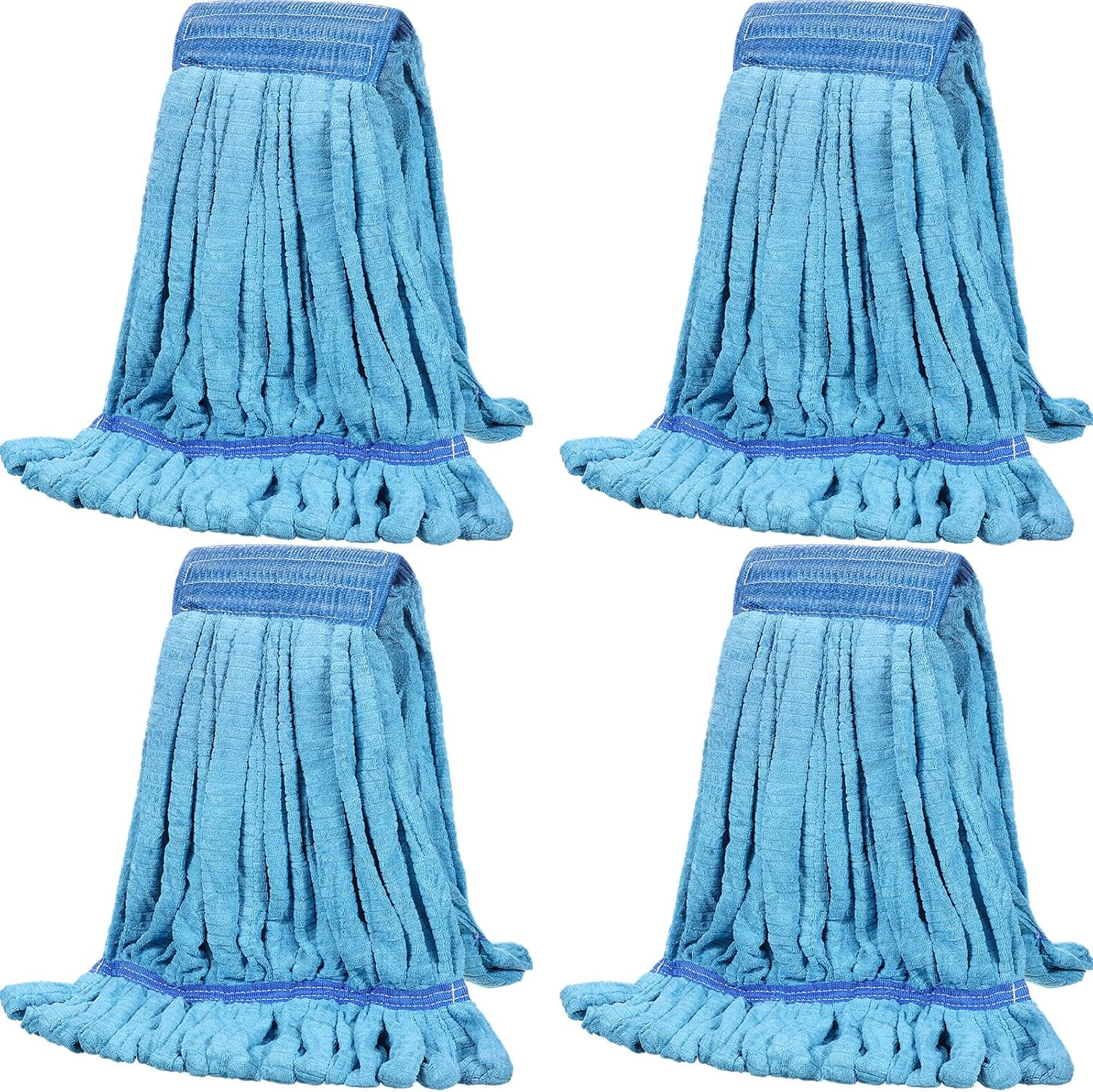Lallisa 4 Pcs Commercial Mop Head Replacement Tube Microfiber Industrial Looped End Mop Heads Refill for Floor Cleaning for Home Commercial Industrial Use(Large,Blue)
