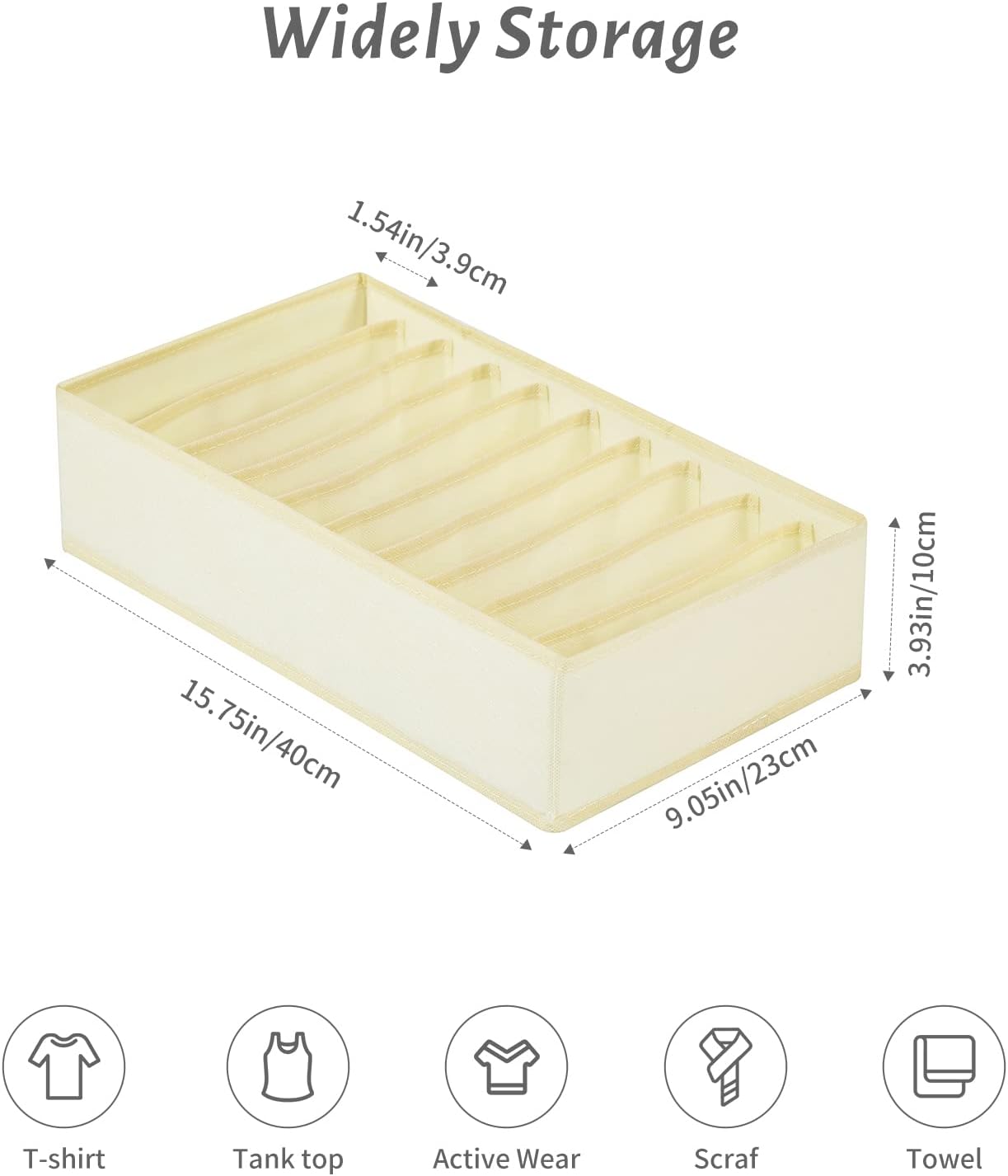 4 Packs T-shirt Drawer Organizers for Clothing,10 Grids Compartment Wardrobe Storage Box, Washable Clothes Organizer for Folded Clothes, T-shirt, Legging-Beige