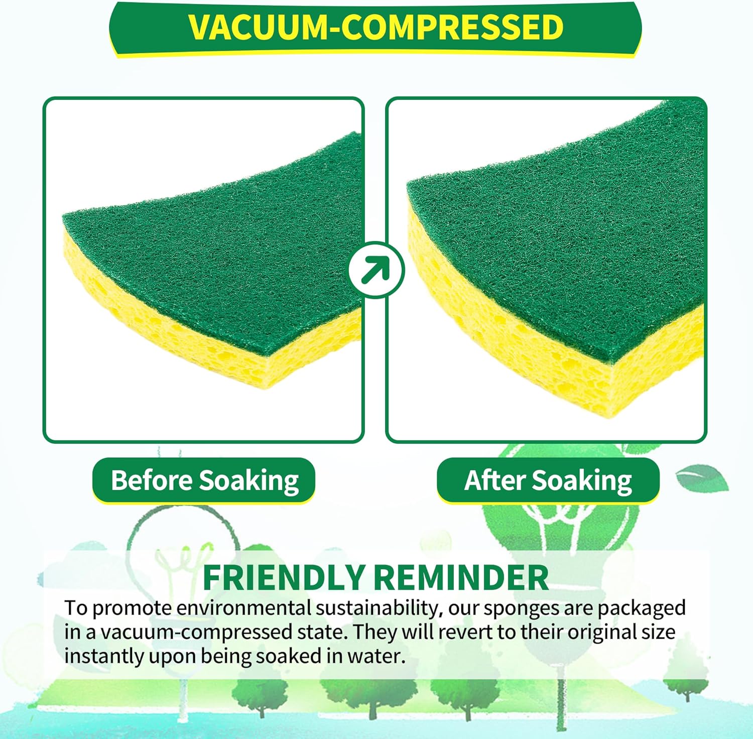 HOMERHYME Heavy Duty Scrub Sponge 24 Pack, Eco Cellulose Kitchen Dish Sponge Multipurpose Ergonomic for Washing Dishes, Uncoated Cookware & Household Cleaning.