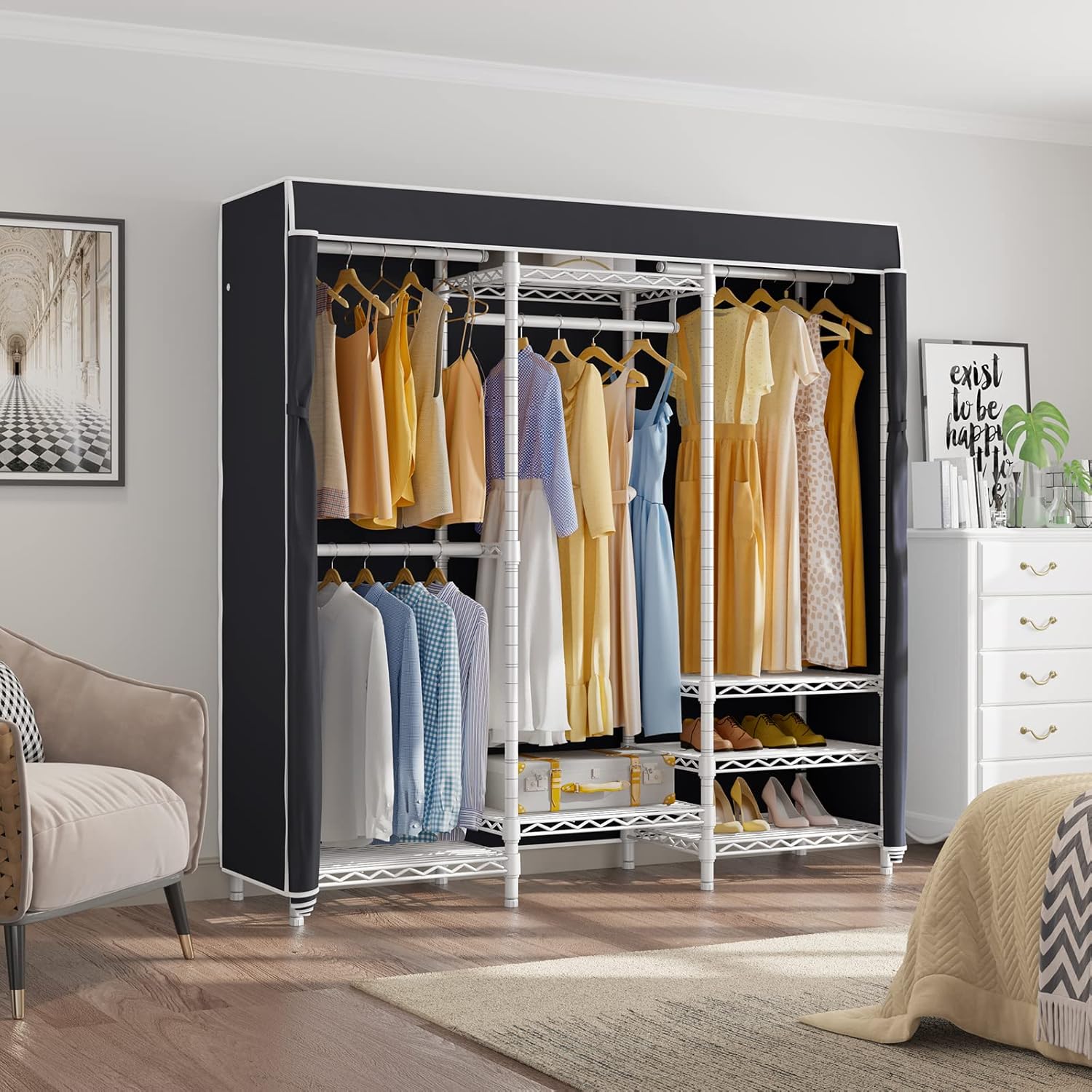 VIPEK V5C Covered Clothes Rack Heavy Duty Portable Closet Wardrobe, Freestanding White Metal Clothing Rack with Black Dustproof Cover, Adjustable Custom Closet Rack, 57.9"L x 17.3"W x 76.4"H (Medium)