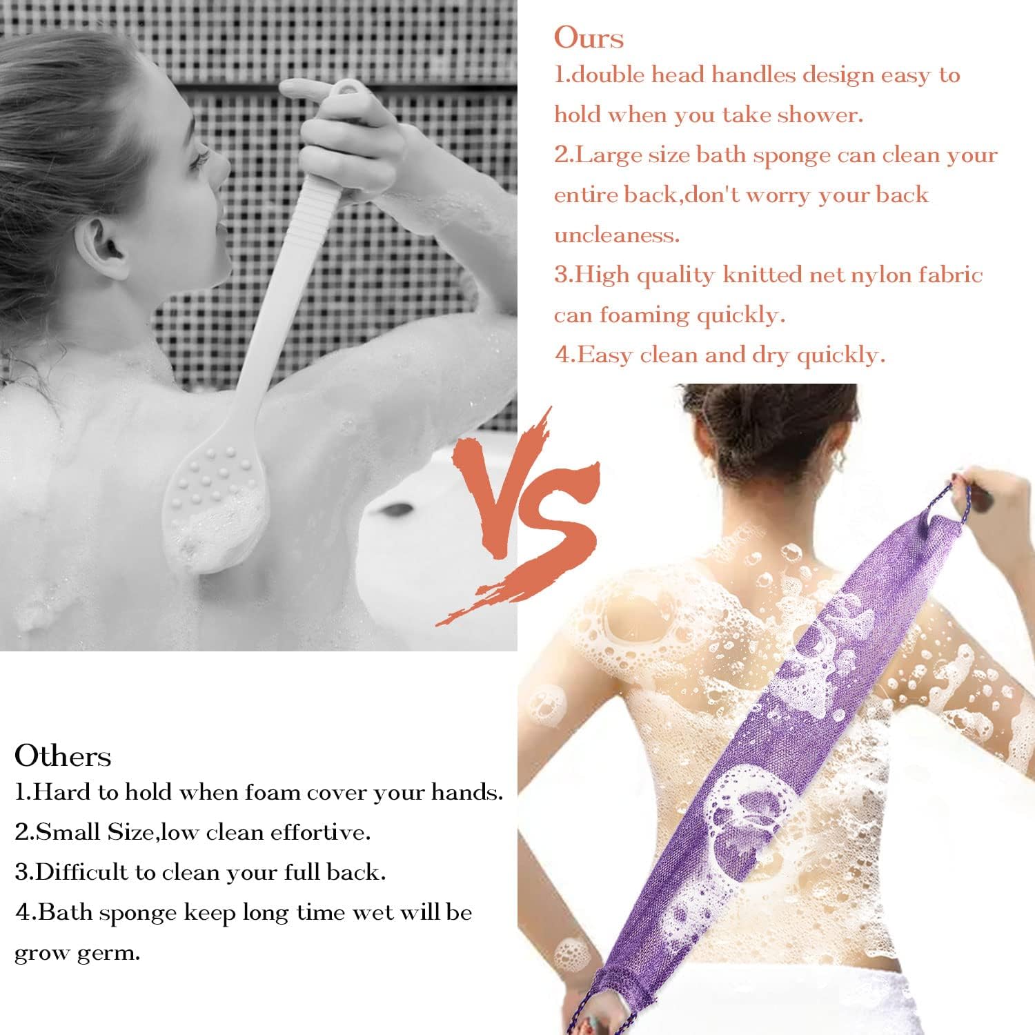 - Great Stretch & Rich Fome: Measured 31.5"*3.35", it can be stretched up to 40" effortless, long enough to reach every corner of your body. With excellent lathering performance, it will give you a wonderful bath experience.