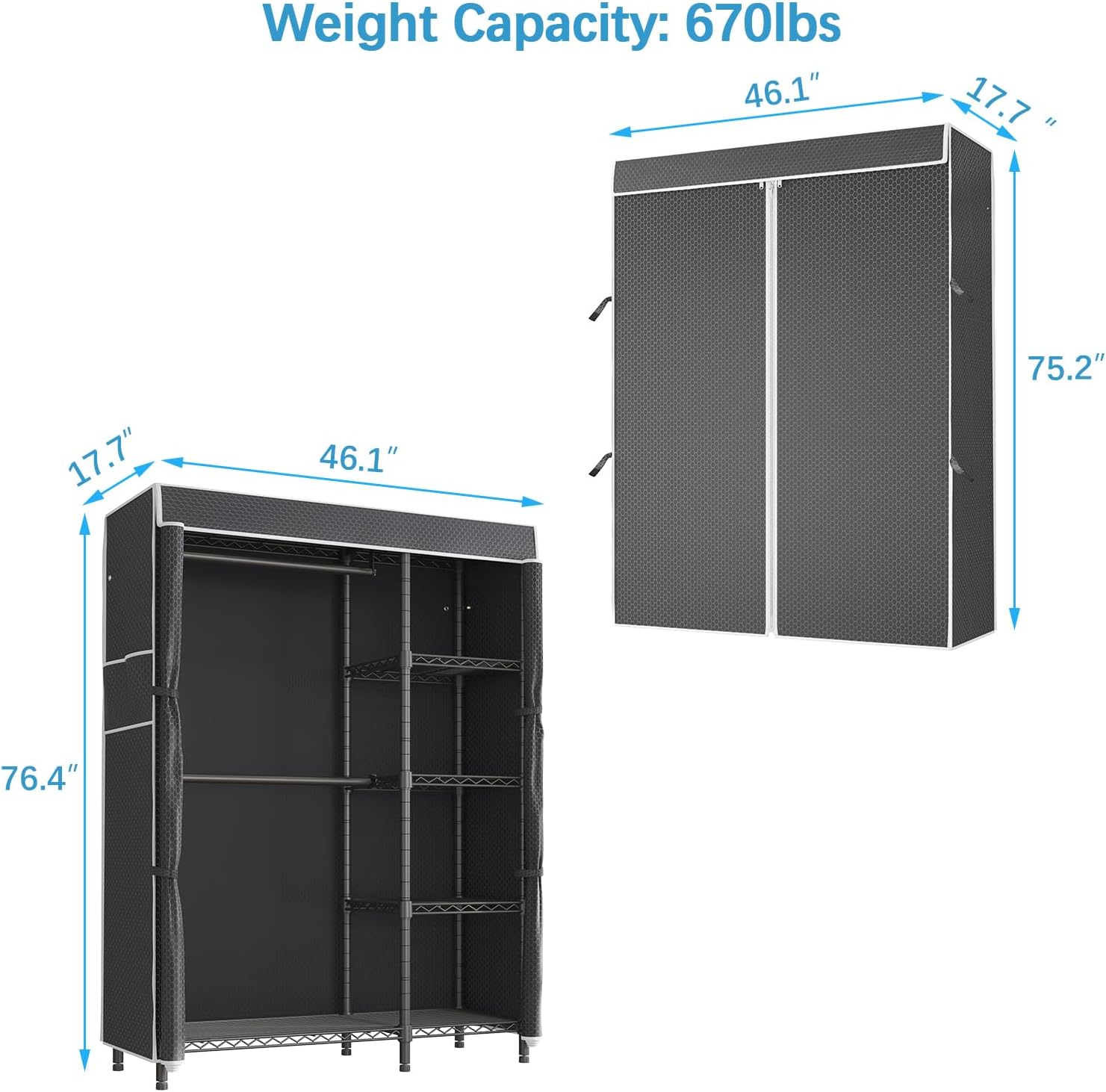 VIPEK V7C Garment Racks with Cover Portable Closets for Hanging Clothes, Heavy Duty Clothes Rack with Shelves Metal Closet Wardrobe, Max 670lbs, Black Rack with Black Upgraded Polyester Cover