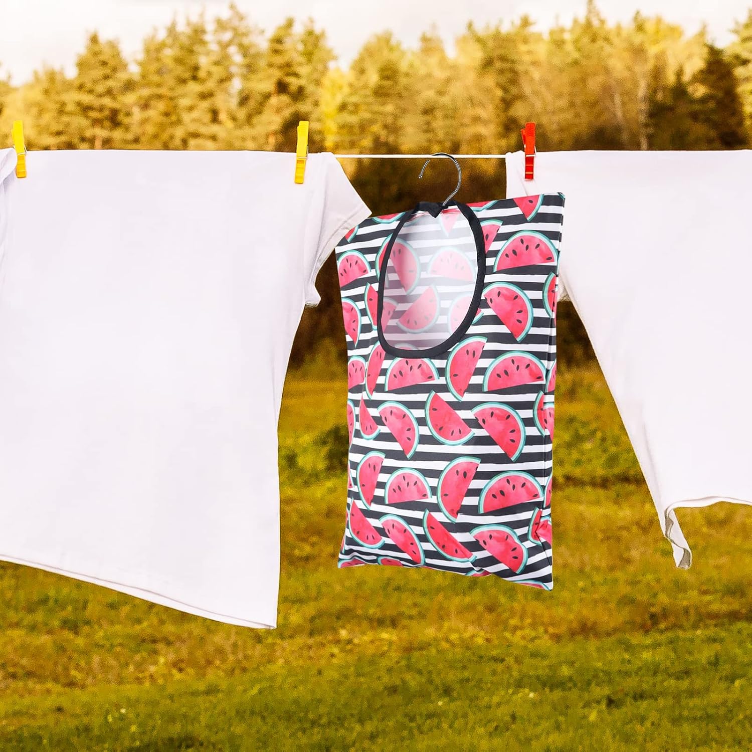 - Watermelon Theme: package includes 2 pieces of clothespin bags with hanger in different watermelon designs, full of summer feeling, can add charm to your home; Proper quantity can satisfy your different daily use and replacement needs