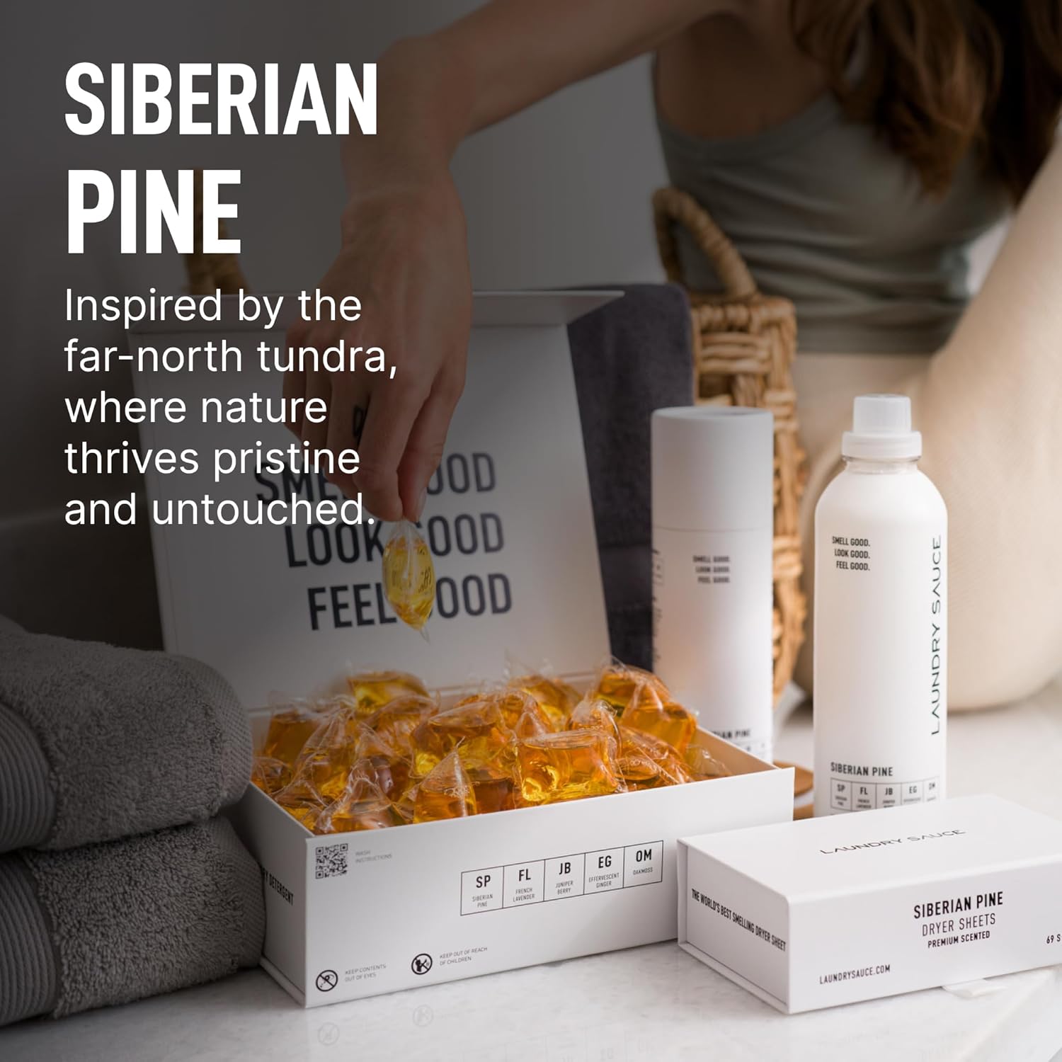 Laundry Sauce - Luxury Scented Laundry Detergent Pods & Scent Booster Bundle (Siberian Pine), Premium Laundry Washing Pods with High-End, Sophisticated Fragrances - Dye Free & HE Compatible