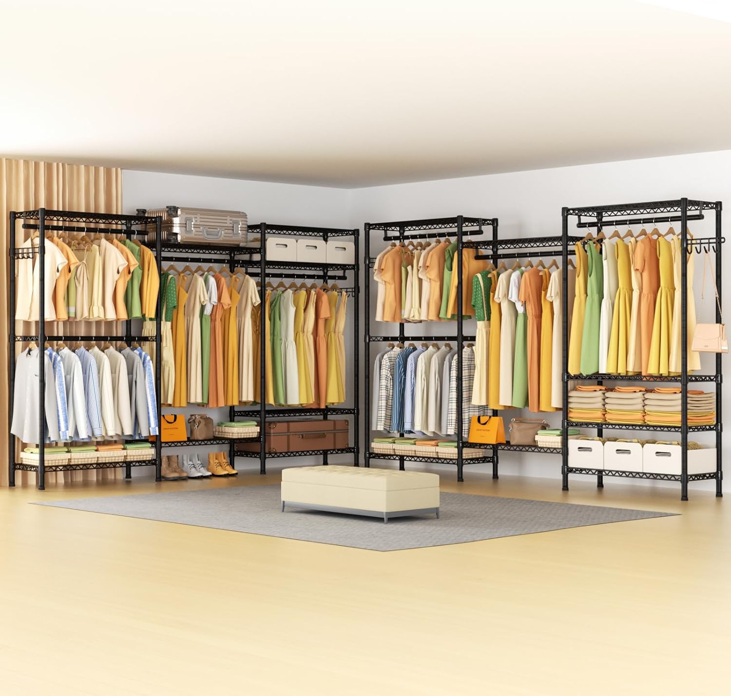 - Effortless Assembly & Dependable Design: Bid farewell to complex assembly processes. Our garment rack is designed for easy setup without the need for tools. The combination of user-friendly assembly and a large load capacity ensures a dependable storage solution that stands the test of time. Invest in a clothing storage system that effortlessly blends efficiency, durability, and style for an unparalleled storage experience