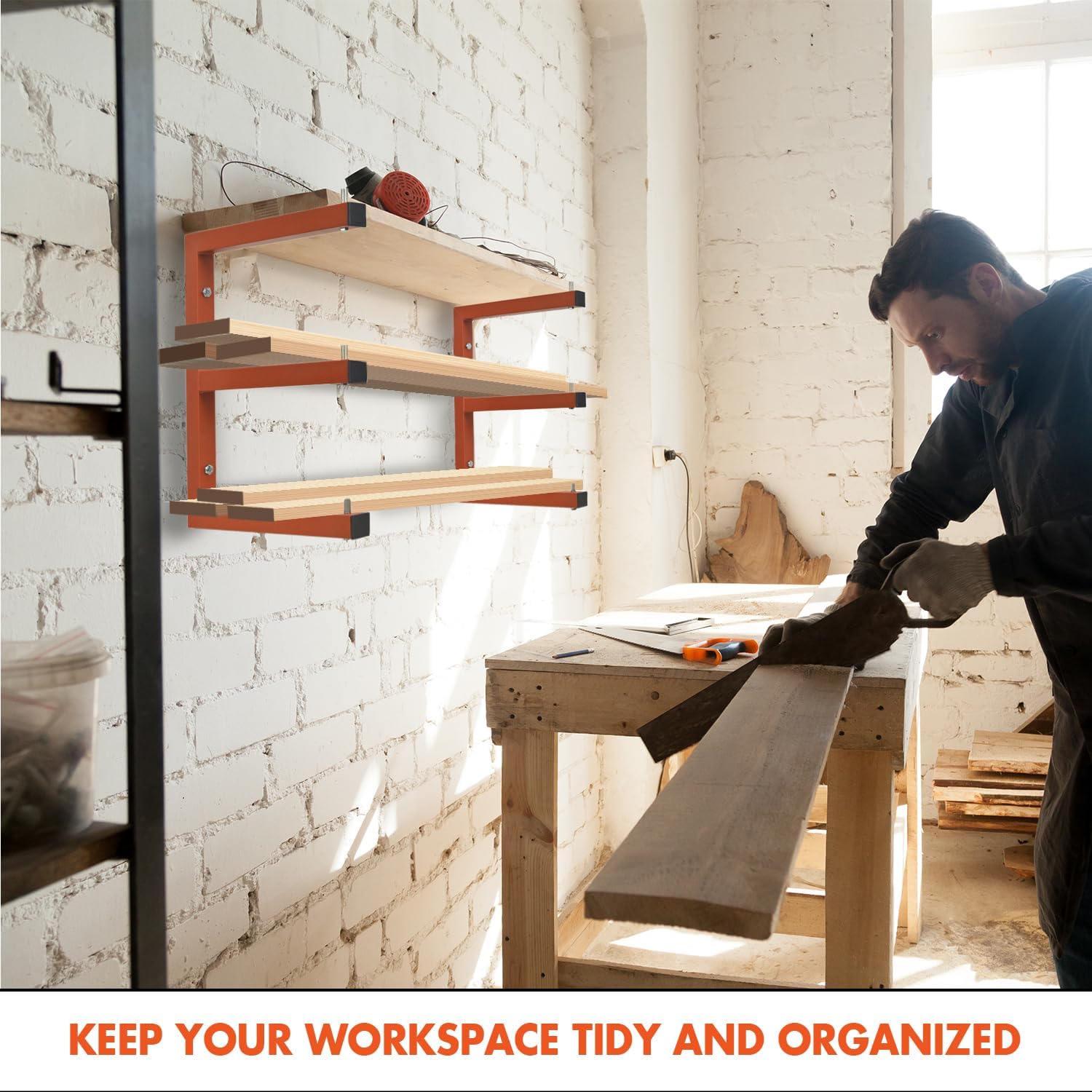 Lumber Storage Metal Rack Wall, Heavy Duty 3-Level Wall-Mounted Wood Rack Organizer for Garage Workshop and Shed (4 Pack)