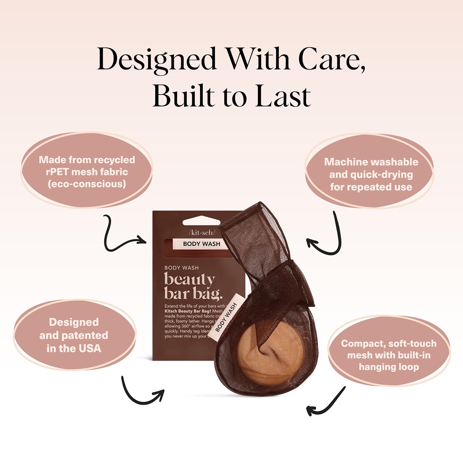 Kitsch Bar Soap Saver Bag – Patented Mesh Bag Soap Holder for Body Wash Bar - Extends Use & Prevents Soggy Mess - Recycled Mesh Beauty Pouch, Eco-Friendly – Chocolate