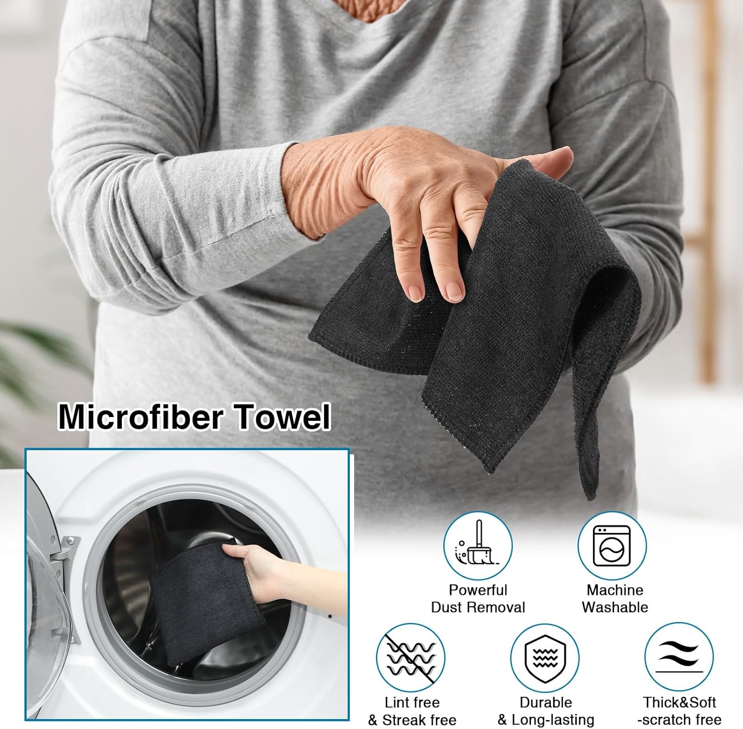 - Large Quantity: you will receive 200 pieces black microfiber cleaning cloth, which come in a vacuum sealed package; Each measures about 12 x 12 inches, ideal for dusting, scrubbing, wiping and drying and works, great for home, offices, kitchen, restaurants, hotels, cars, shop, commercial or other cleaning jobs