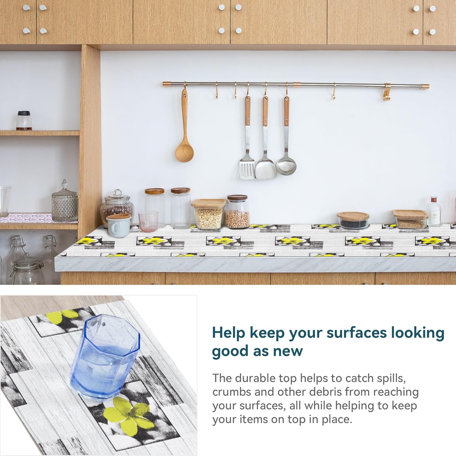 - SHELF LINER: Unique drawer liner design makes you stand out from the crowd of drawer liners. Made from premium thickened material, these non-adhesive shelf anddrawer liners are durable, tear-resistant, and reusable.