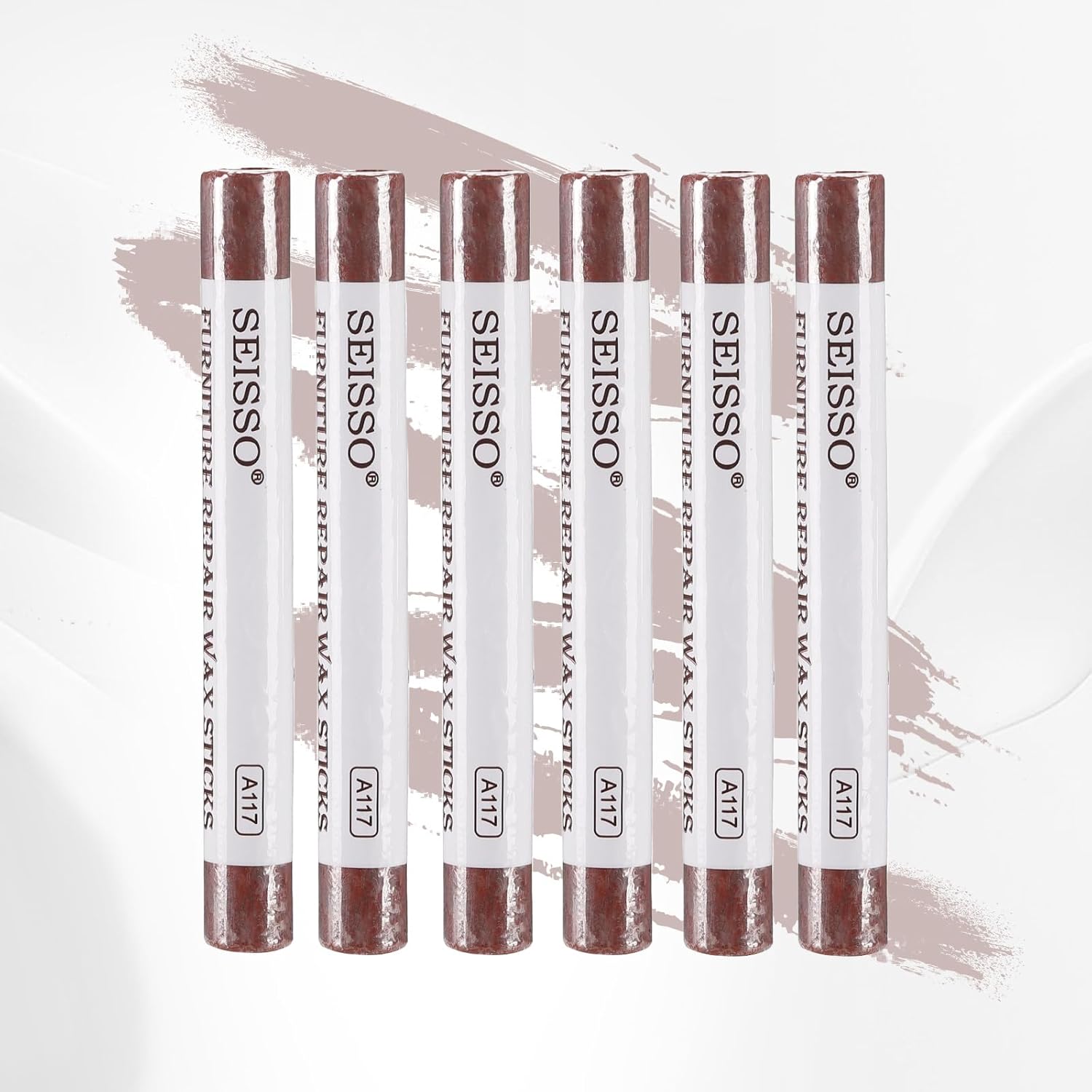 SEISSO Wood Filler Sticks- 6 Pcs, Furniture Repair Wax Crayons, Furniture Marking Repair - Scratch, Cracks, Hole, Table, Wood Floor, Guitar - Heartwood Cherry/Red Brown/Nutmeg