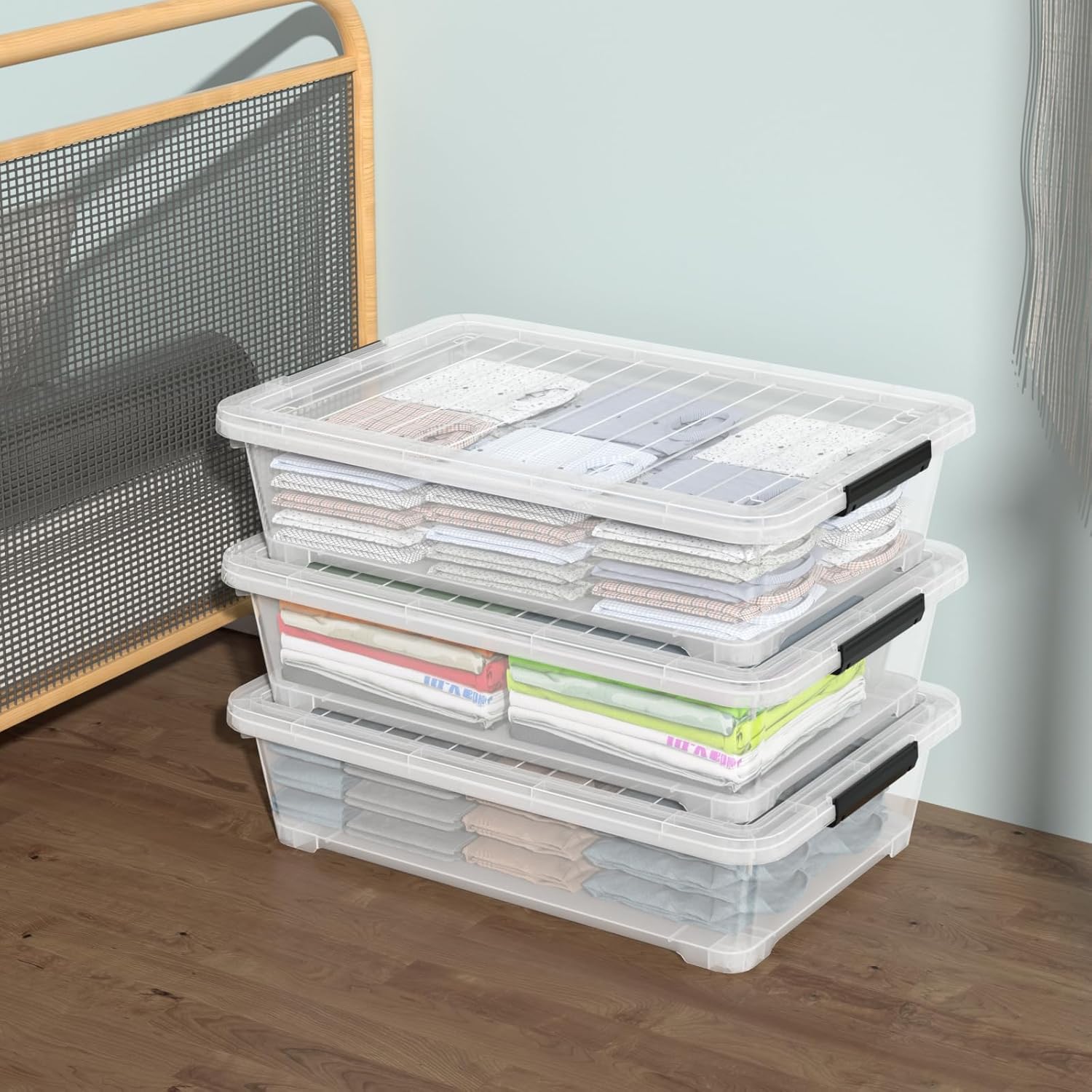 - Featuring with 4 wheels on the bottom, the box can be pulled out and slid out from under the bed smoothly and easily. Especially designed with grooves on the lid, the box can be stacked stably