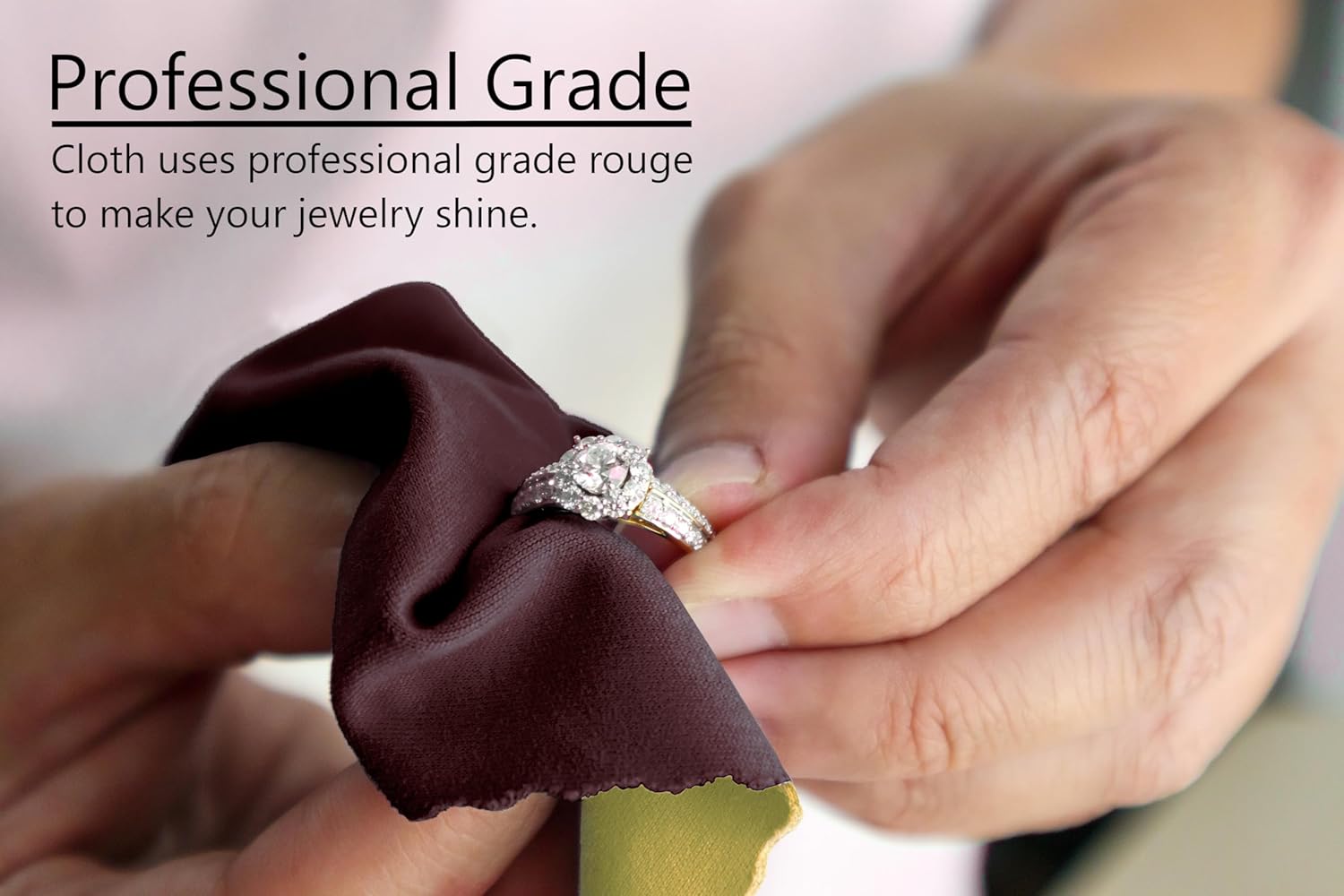 - π WIDER SIZE, DOUBLE SURFACE - 10 x 12 polisher easy to use and handle, the inner red cloth is impregnated with professional jeweler's rouge, a compound that cleans and removes tarnish from gold, silver and other metals like magic. The outer layer of the cloth protects the hands and buffs metal to a like-new shine, with its harmless micro-abrasives.